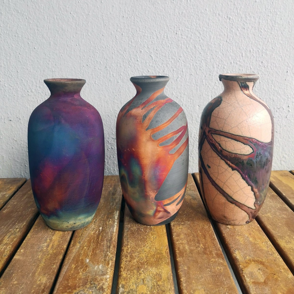 Adil’s Raku pieces come in 5 different types of finishes: full-copper matte, half-copper matte, smoked (or ‘naked’), carbon half-copper matte, and obvara (a slightly varied technique of firing).