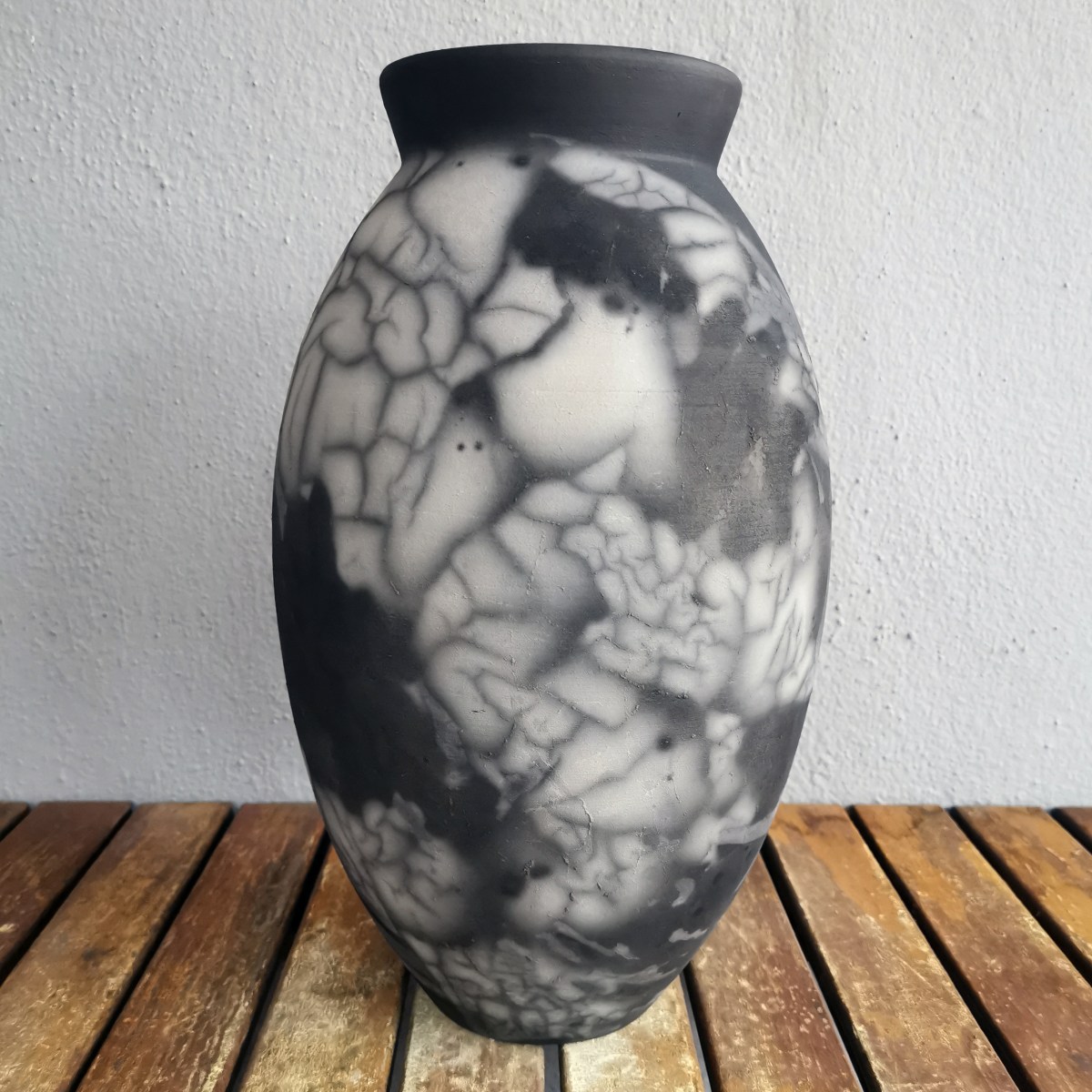 Large Oval Vase in Smoked Raku Finish, Ceramic Vase, 13.5″ tall