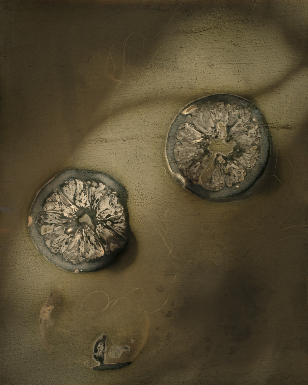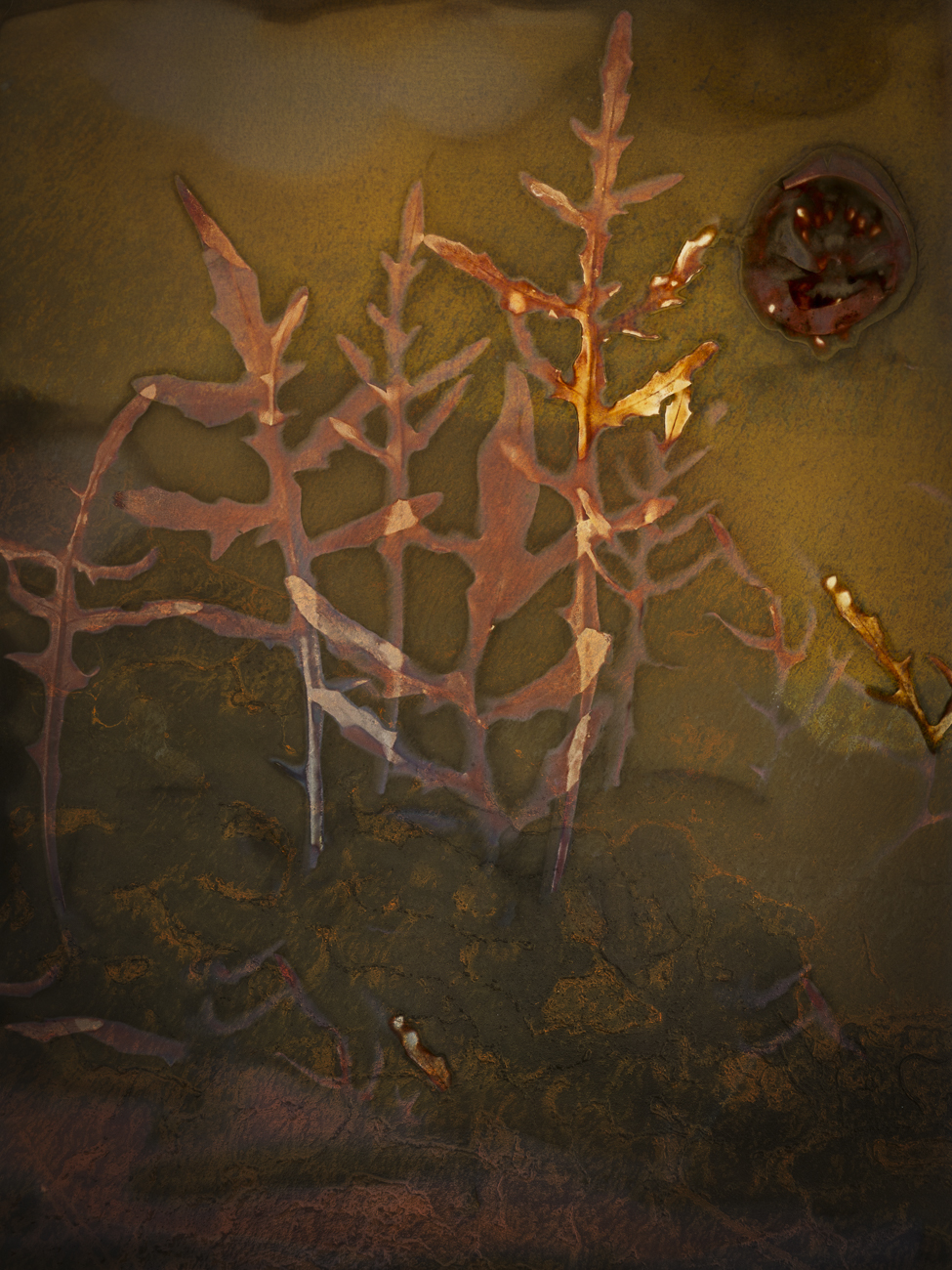 ‘Adama,’ the title of this portfolio, is the Hebrew word for earth. Nestled within it, rests ‘Adam’ – in Hebrew – a human being. This portfolio is my way of embracing this land, acknowledging I am part of her and she is part of me. Each image started as a Lumen print created with sun, rain, earth as well as natural bits and bytes from the kitchen and the garden. Combined with fragments of digital photographs and scanned images each print becomes a story, a wish, a prayer.