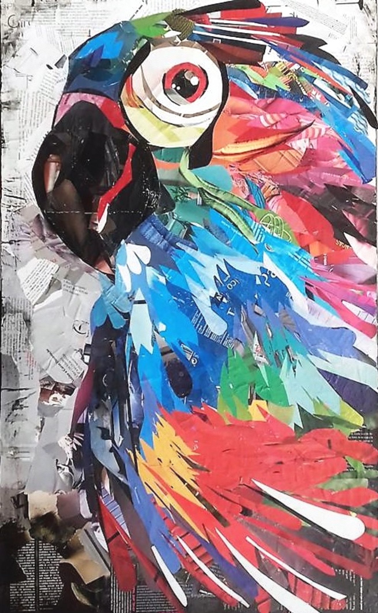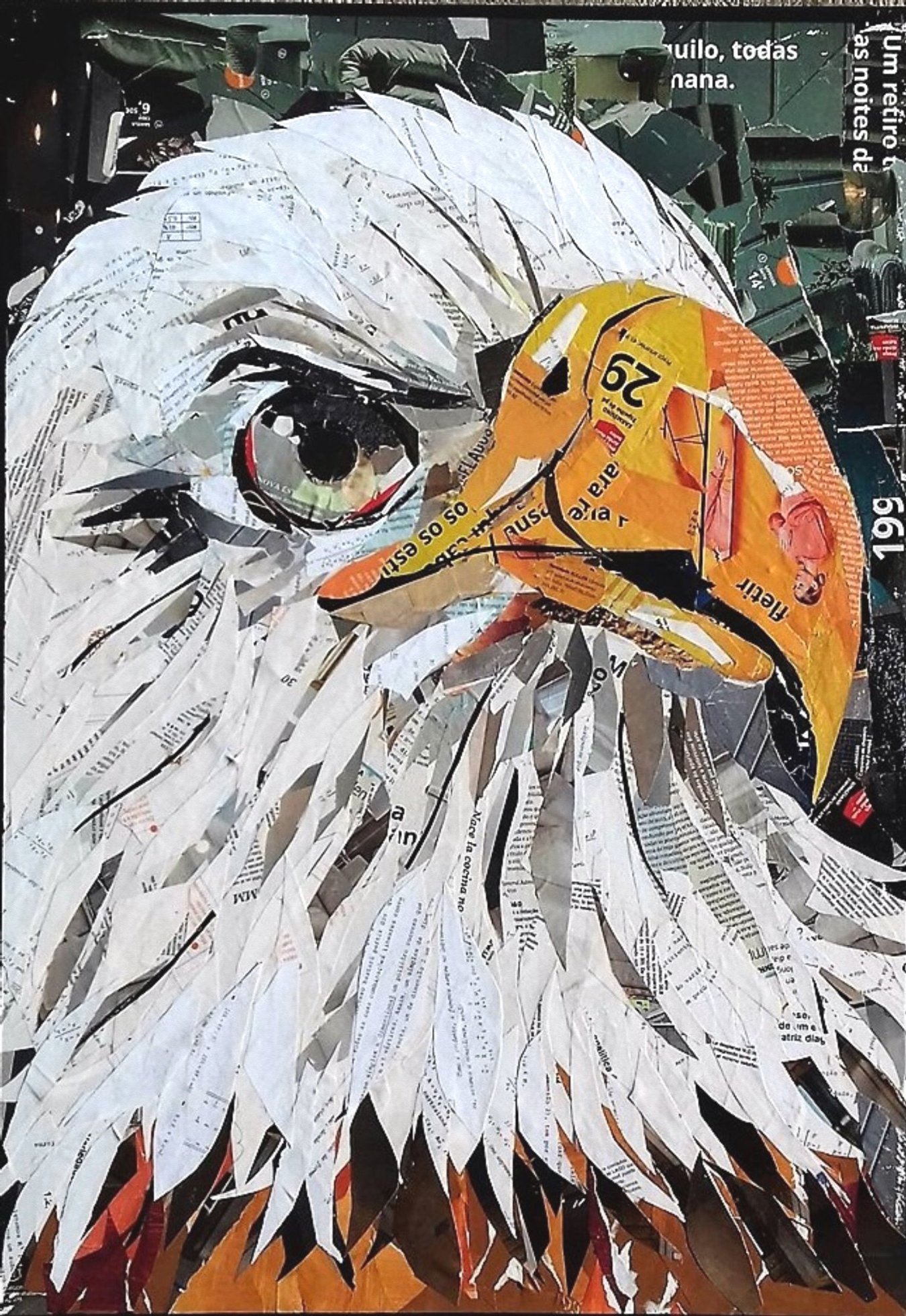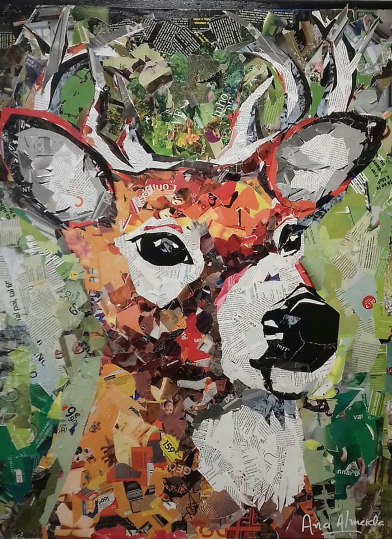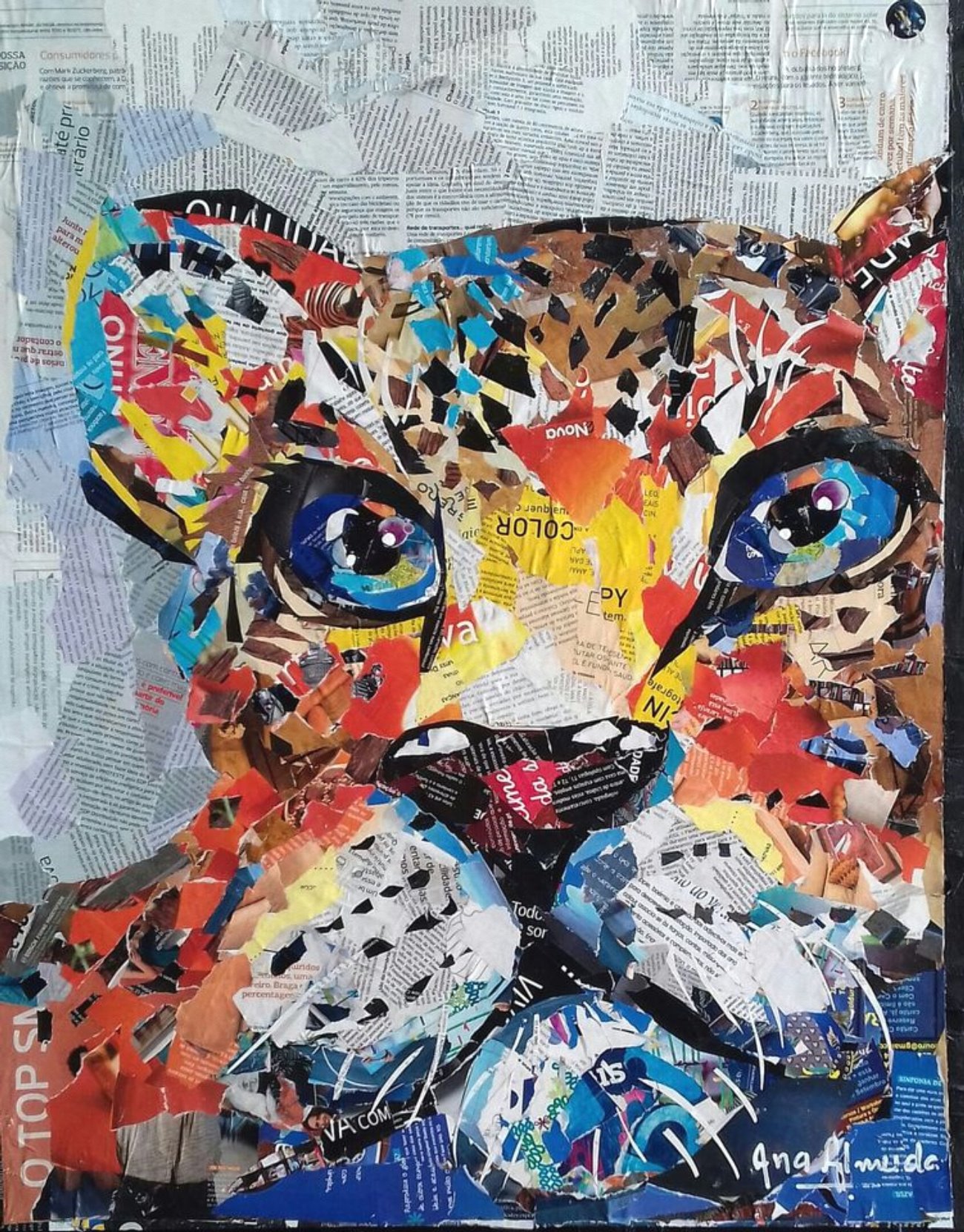 Ana is currently, seeking to promote greater environmental awareness and sustainability on the planet, the artist began the technique of collage on canvas, using recycled materials such as newsprint and magazines, thus giving a new dynamic to her artistic work and a new life to materials, once considered as waste or garbage. She is essentially inspired by people and animals in a perspective full of bright colors, textures and reliefs.