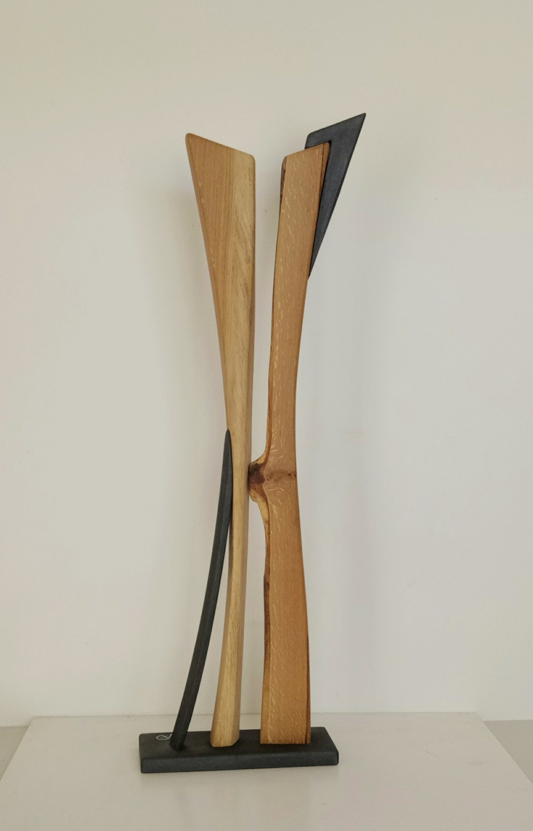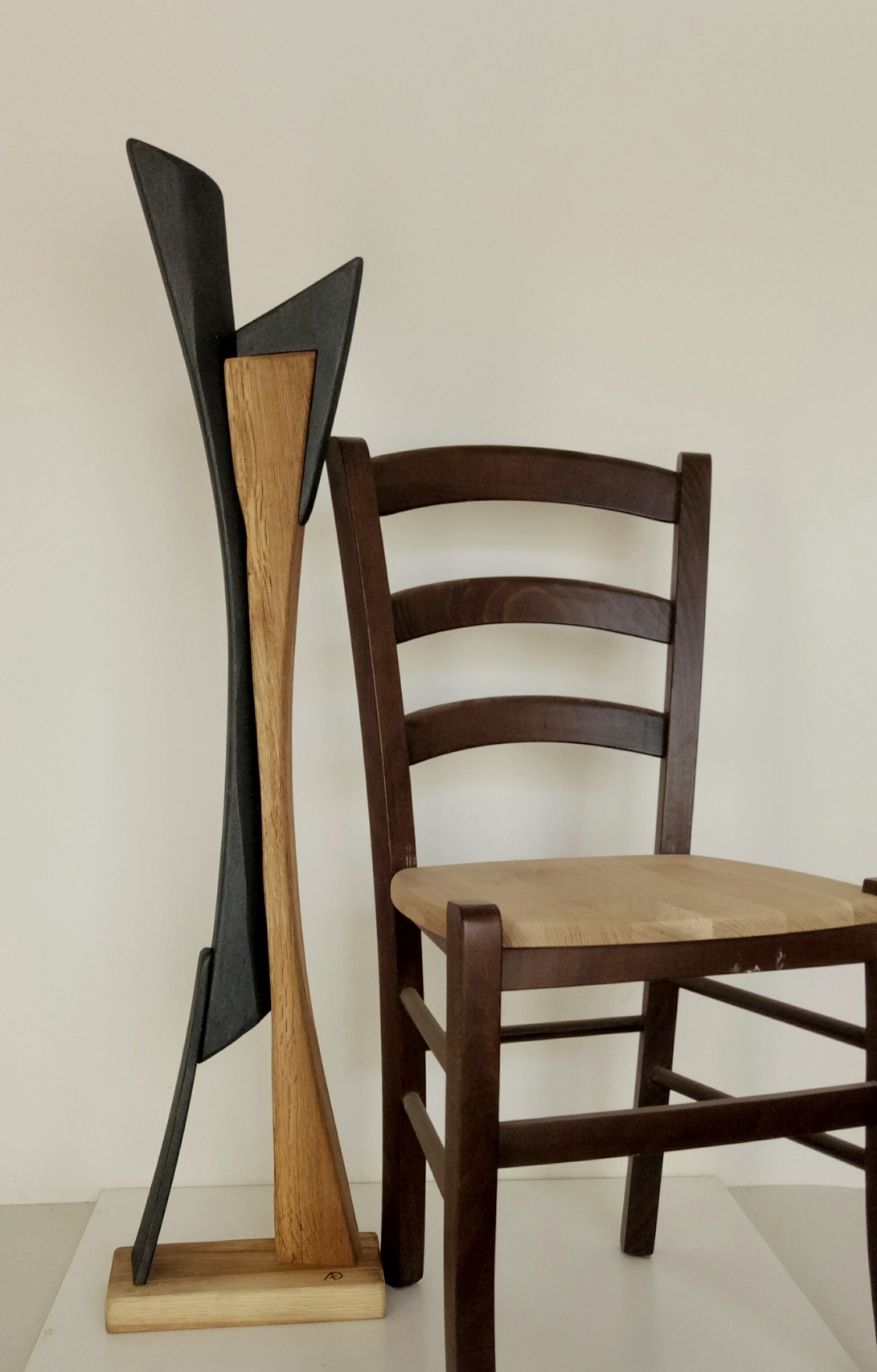 These are artistic sculptures in solid oak wood and metal effect paint; oil finish. They are objects that create a unique atmosphere in the environment in which are located and, if illuminated, create suggestive shadows. In their forms the works follow the original structures of the wooden planks from which they were obtained and the sculptures are unique pieces.