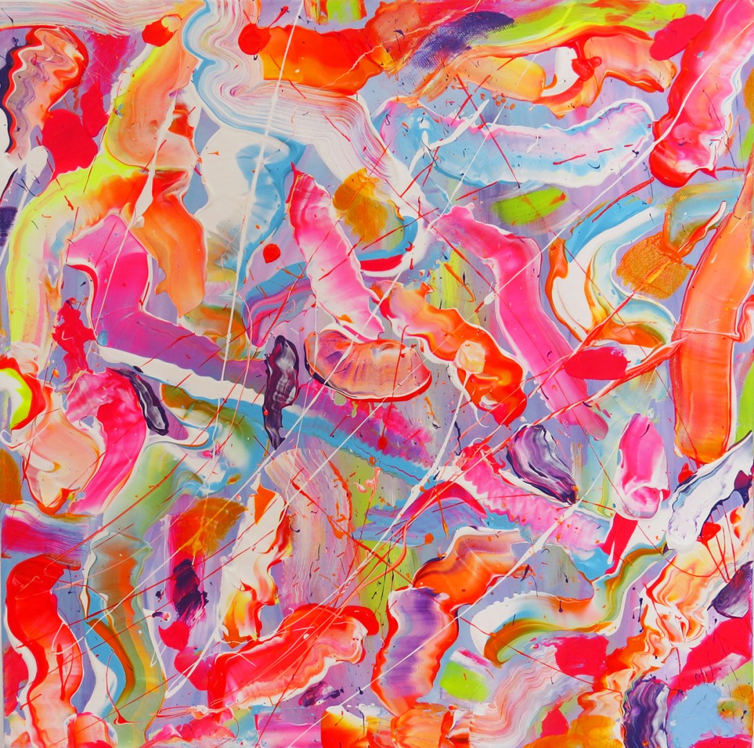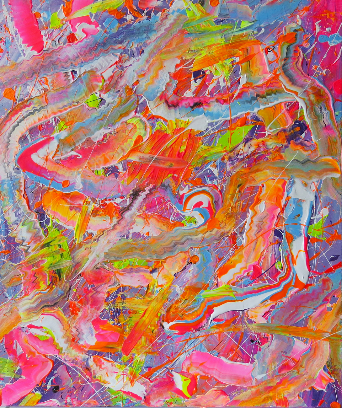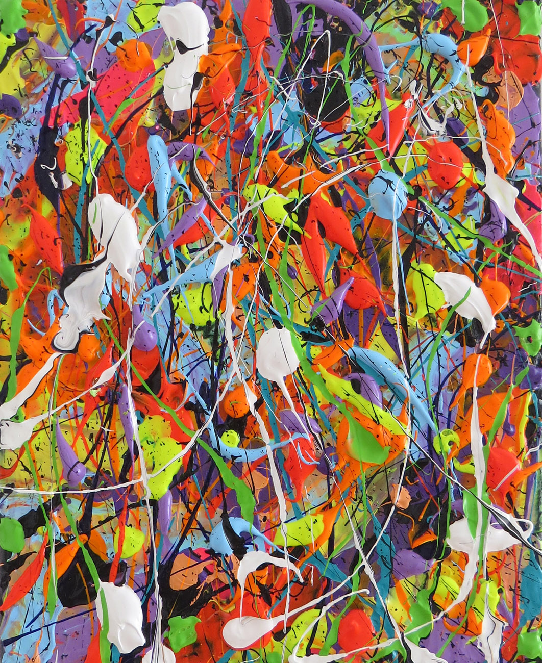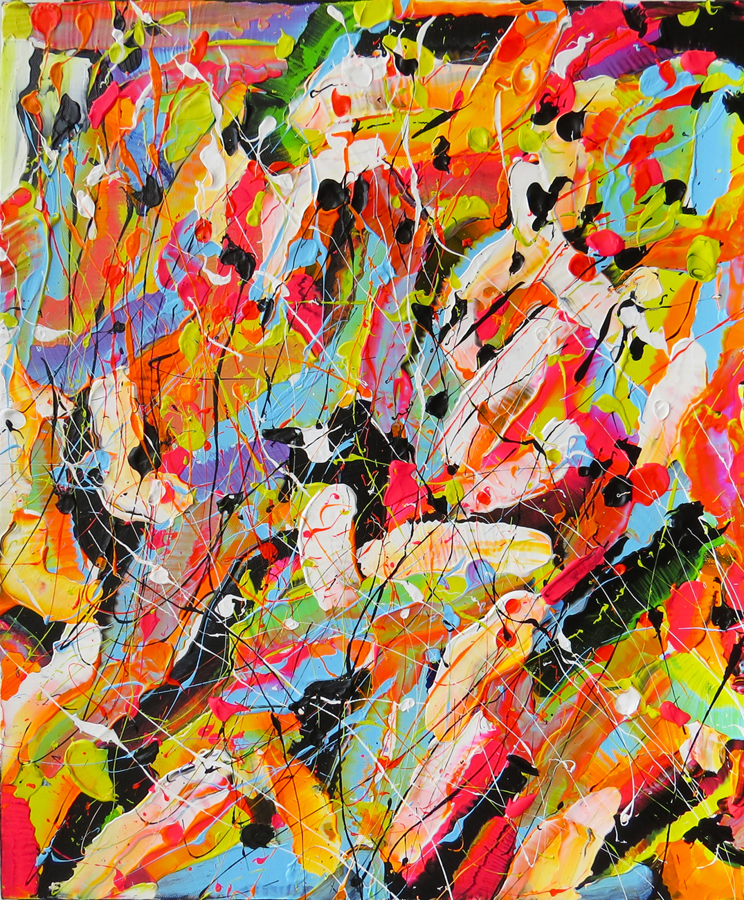 There is no control in my artwork. I feel as though I am completely free of any restraints to what the norm should be. My process is spontaneous and I paint unique concepts, emotions, memories and ideas, coming from deep within. My works are primarily unstructured with a touch of the urban, graffiti style marks and street art. I admire the works of Jackson Pollock.