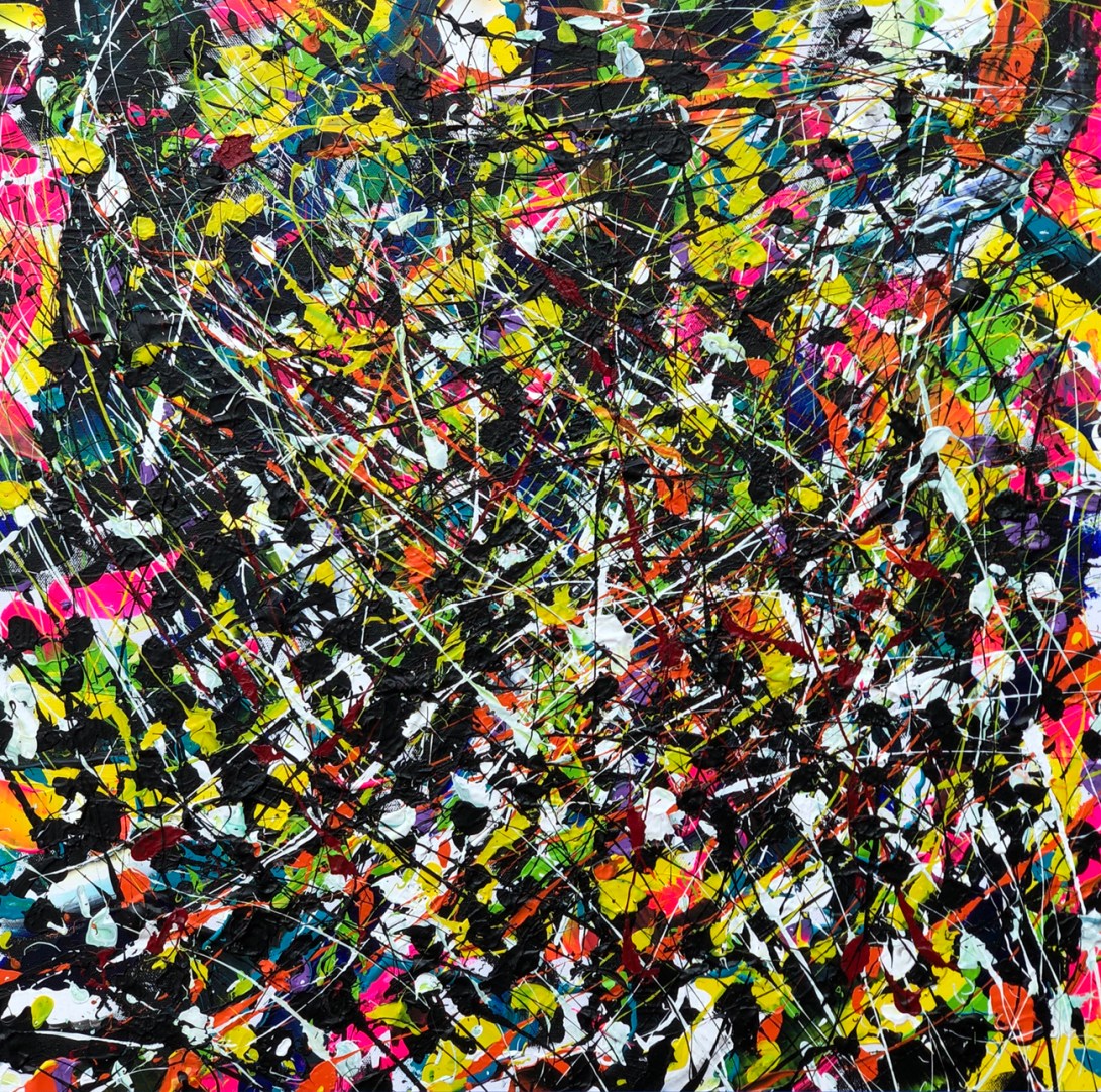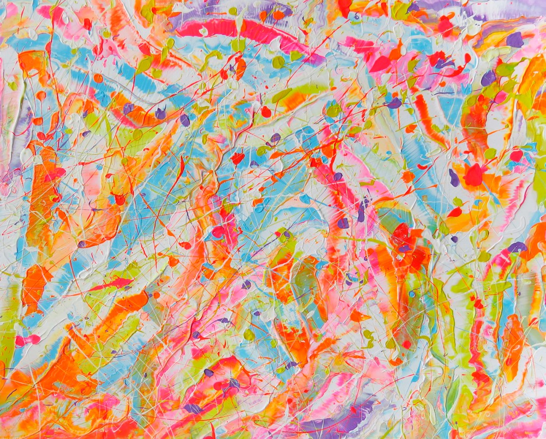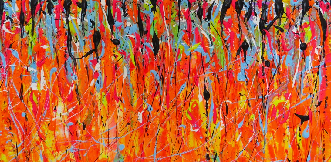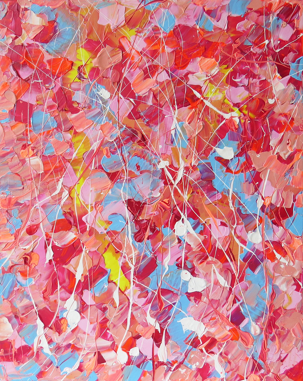 There is no control in my artwork. I feel as though I am completely free of any restraints to what the norm should be. My process is spontaneous and I paint unique concepts, emotions, memories and ideas, coming from deep within. My works are primarily unstructured with a touch of the urban, graffiti style marks and street art. I admire the works of Jackson Pollock.