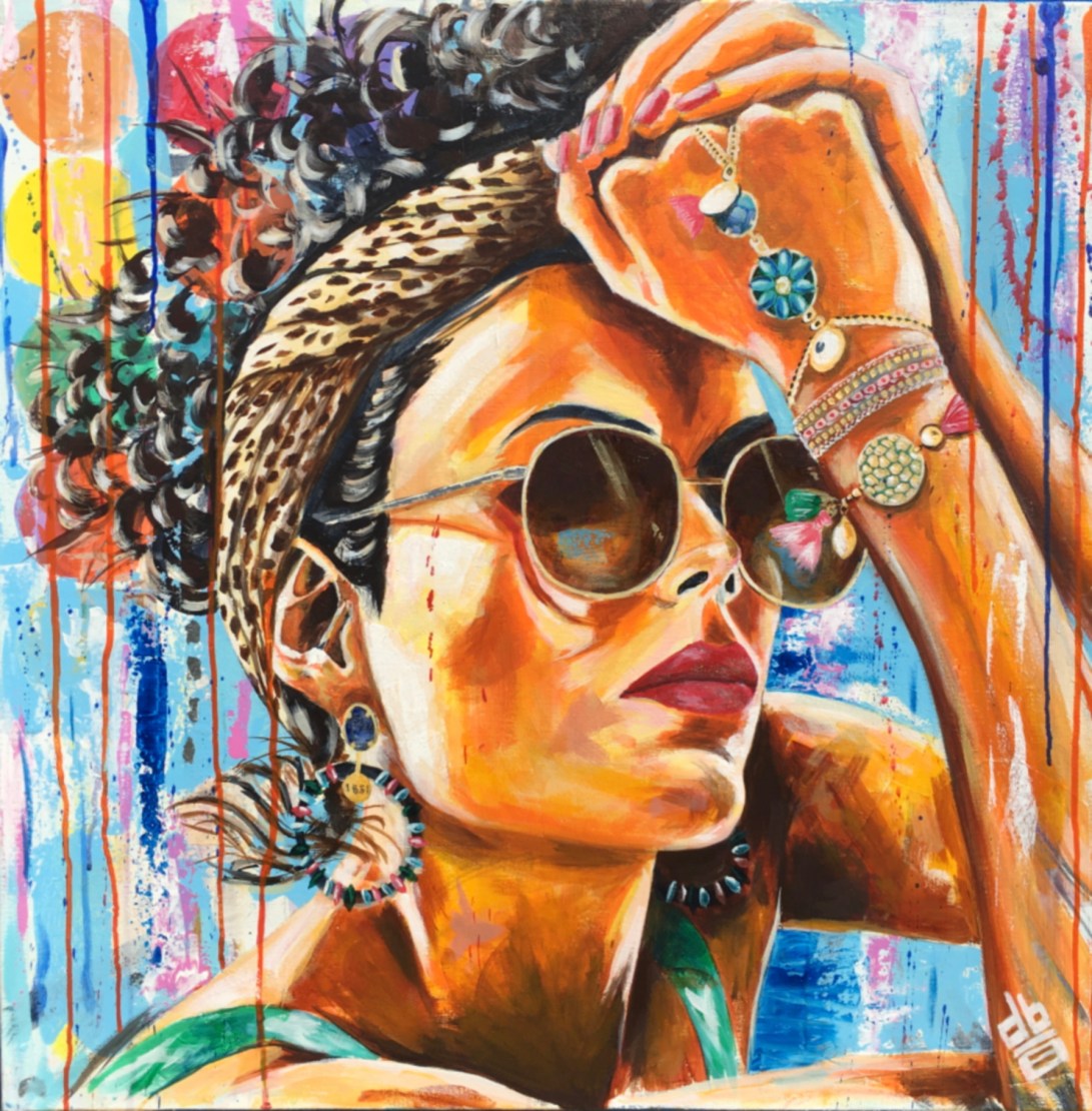 POP GIRL 11 Bohemia, acrylics on canvas, resin, 80X80cm (2021)