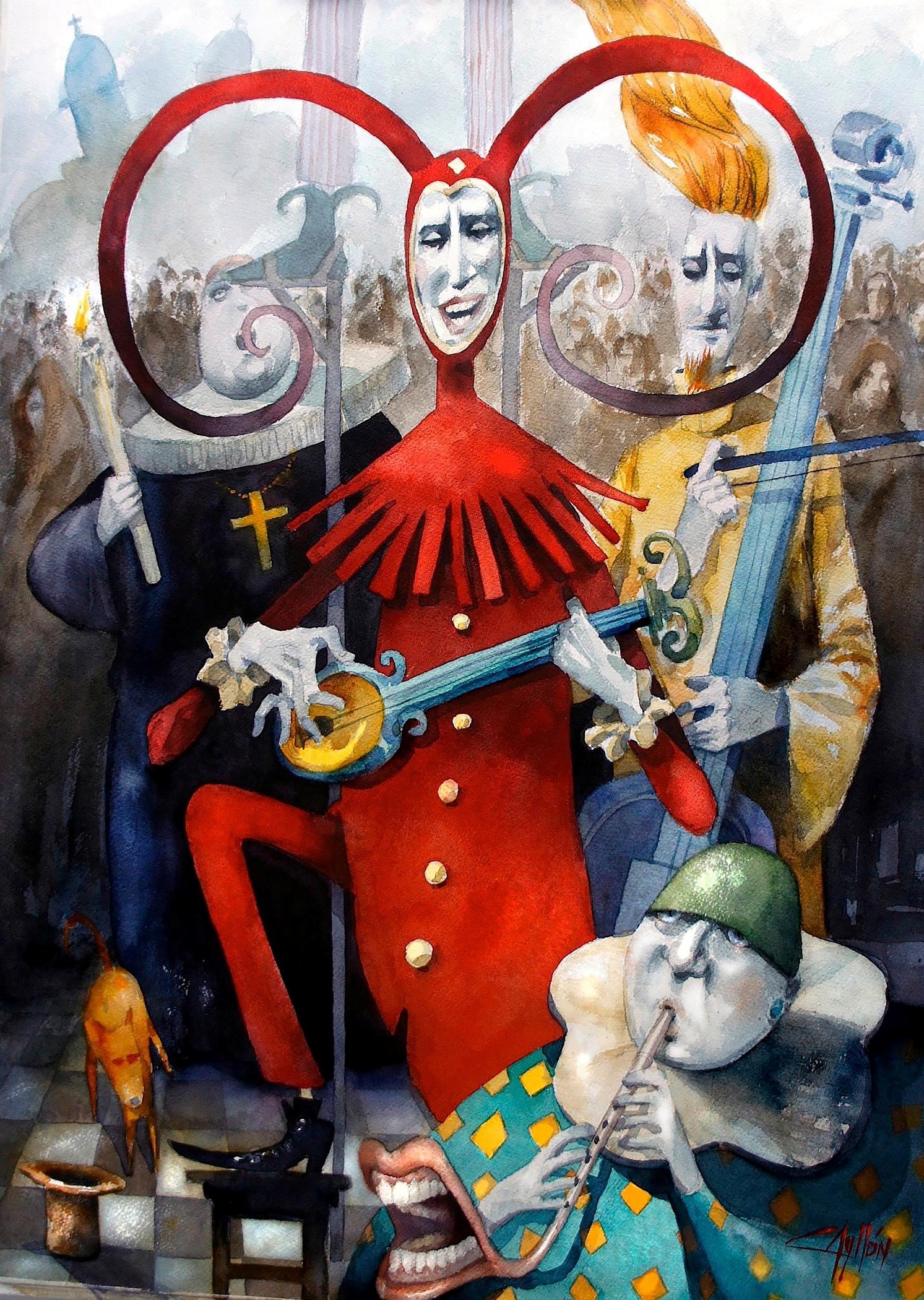 “My work has a definite purpose. To transmit through my paintings the characters that I want to represent who are buffoonish, lonely, contemplative and to a certain extent dramatic.”