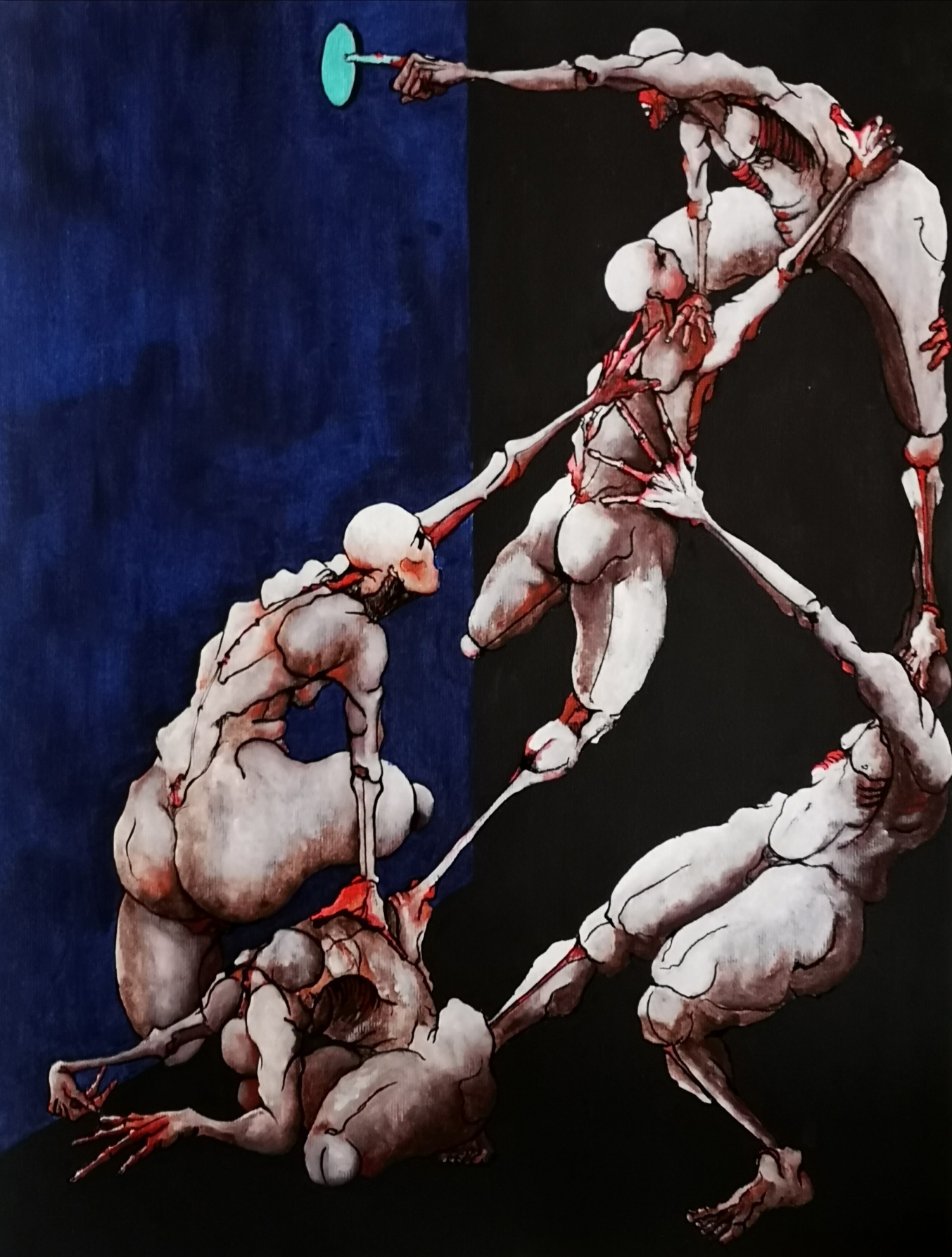 Body as a support in which elements confront and tear each other apart, reflecting an aspiration to recreate natural laws according to the laws of imagination.