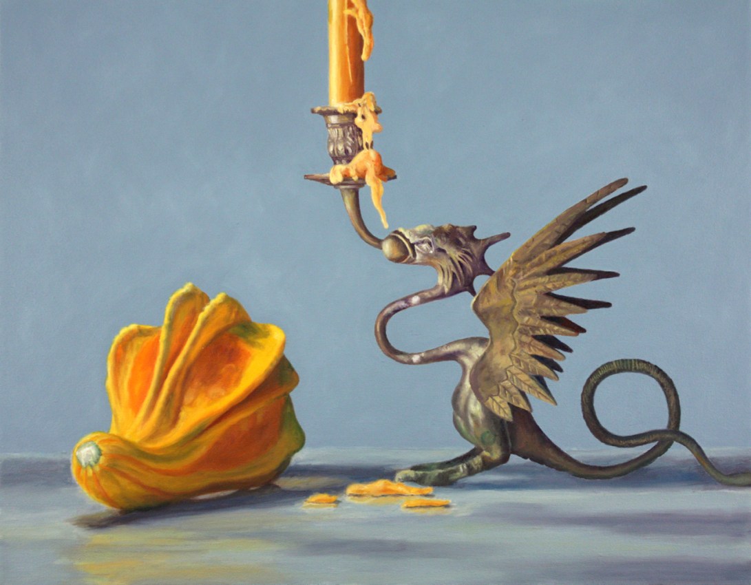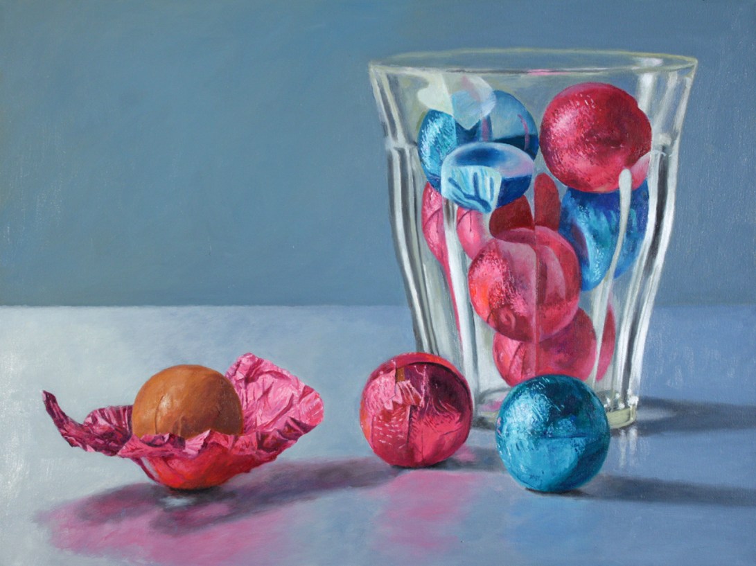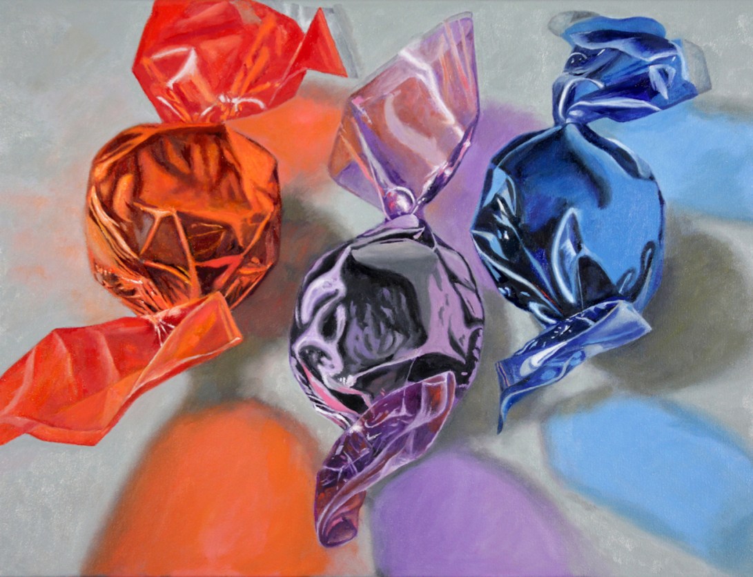 At first, I worked in a “suburban surrealism” mode, painting the American landscape, houses and gardens, mostly from my imagination. I have also drawn and painted extensively from the figure. At the same time, I began painting still lives, mostly food, toys and household objects. Gradually, the still life painting became my main interest. The series of candy paintings evolved out of my food still lives.