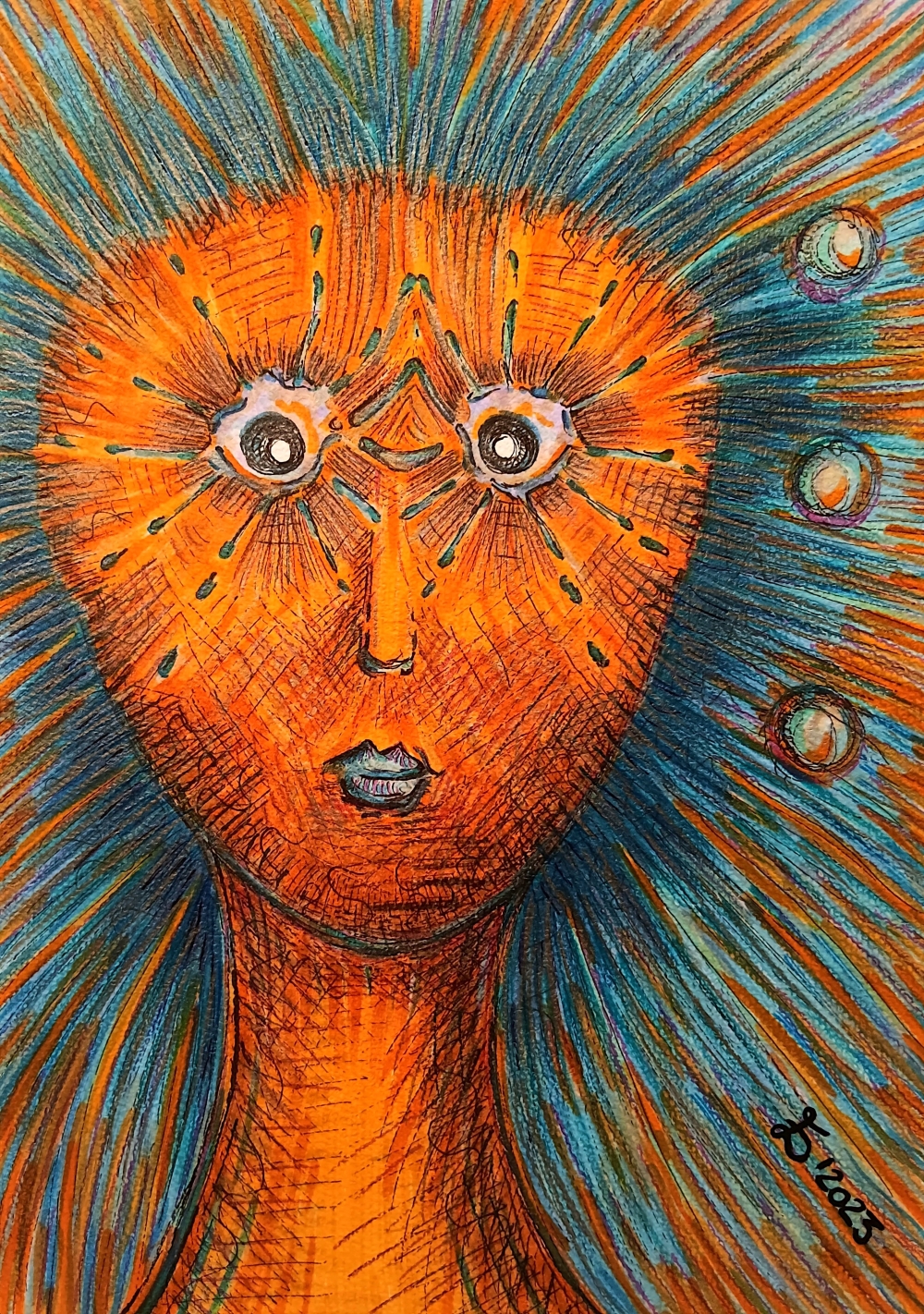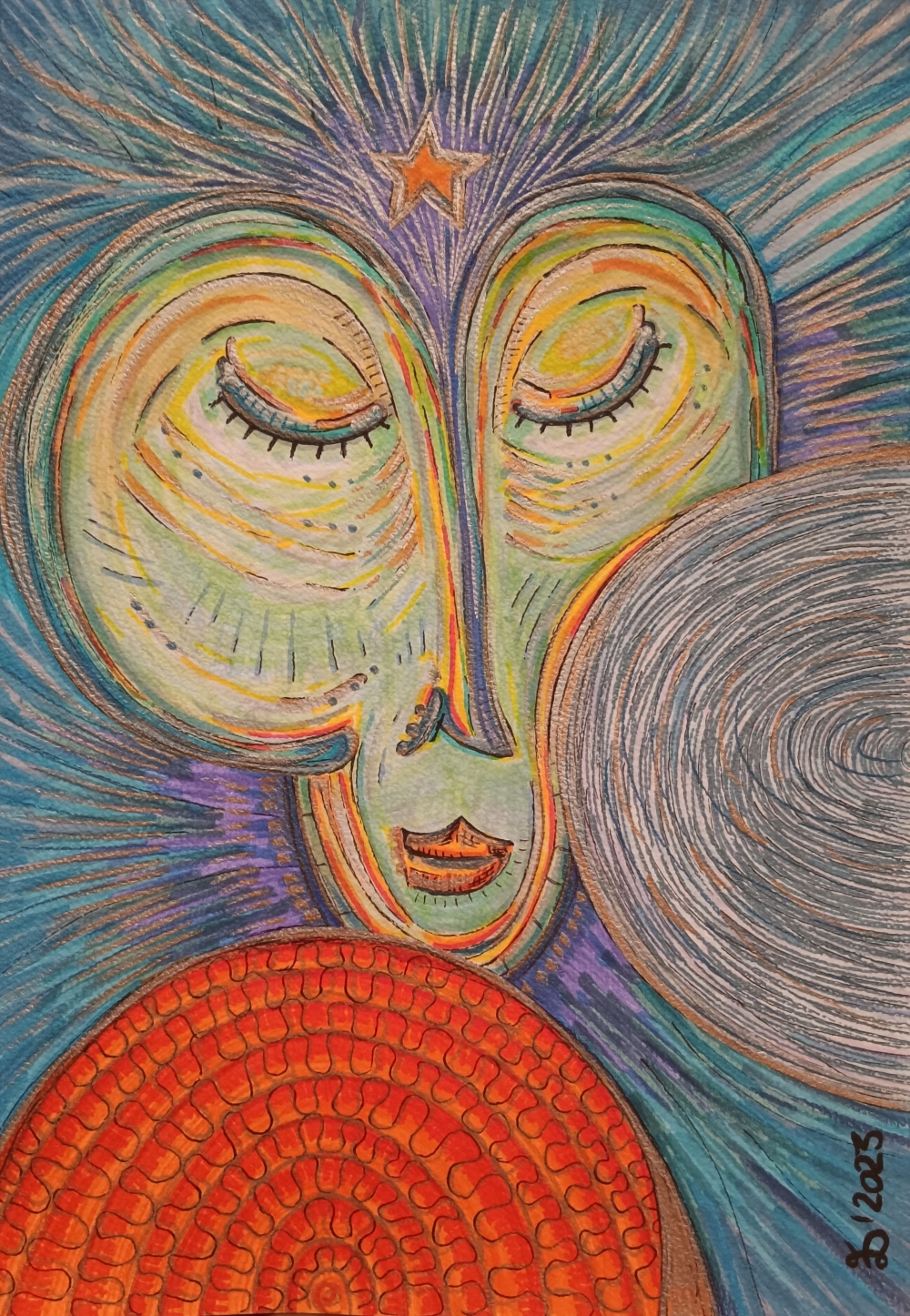 The Midday Face, Drawing on paper 300 g/m2, size A4 (21 x 29,7 cm)