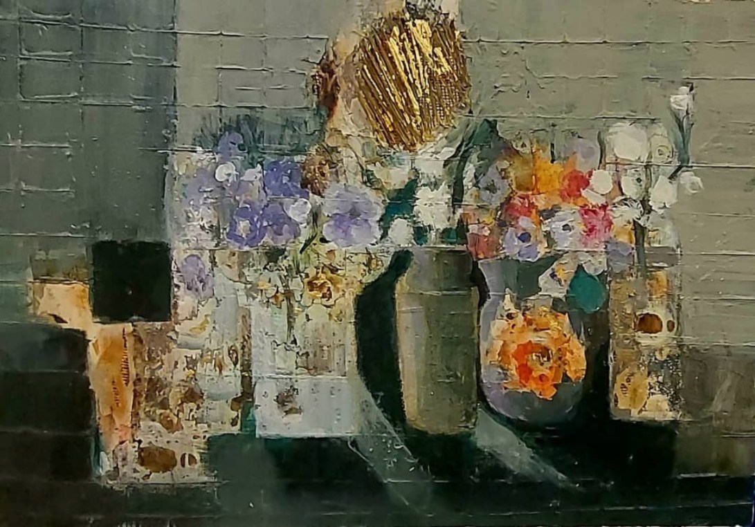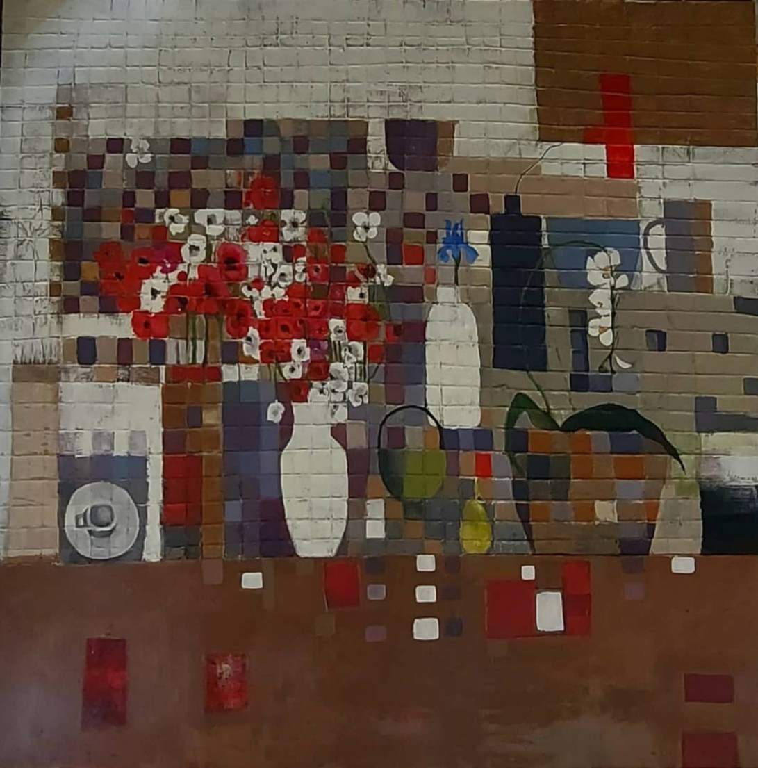 In the first 16 years of my artistic career, I focused on real still-life painting with colored pencils. Then slowly moved away from objectivism and changed my view toward visual art. Through changing elements in my artworks and learning about material substances and textures; I have made new compositions for my paintings. By using materials like metal, wood, glass, rope and fabric, I have created a visual expression using words made from texture, surface, layers, lines and colors.