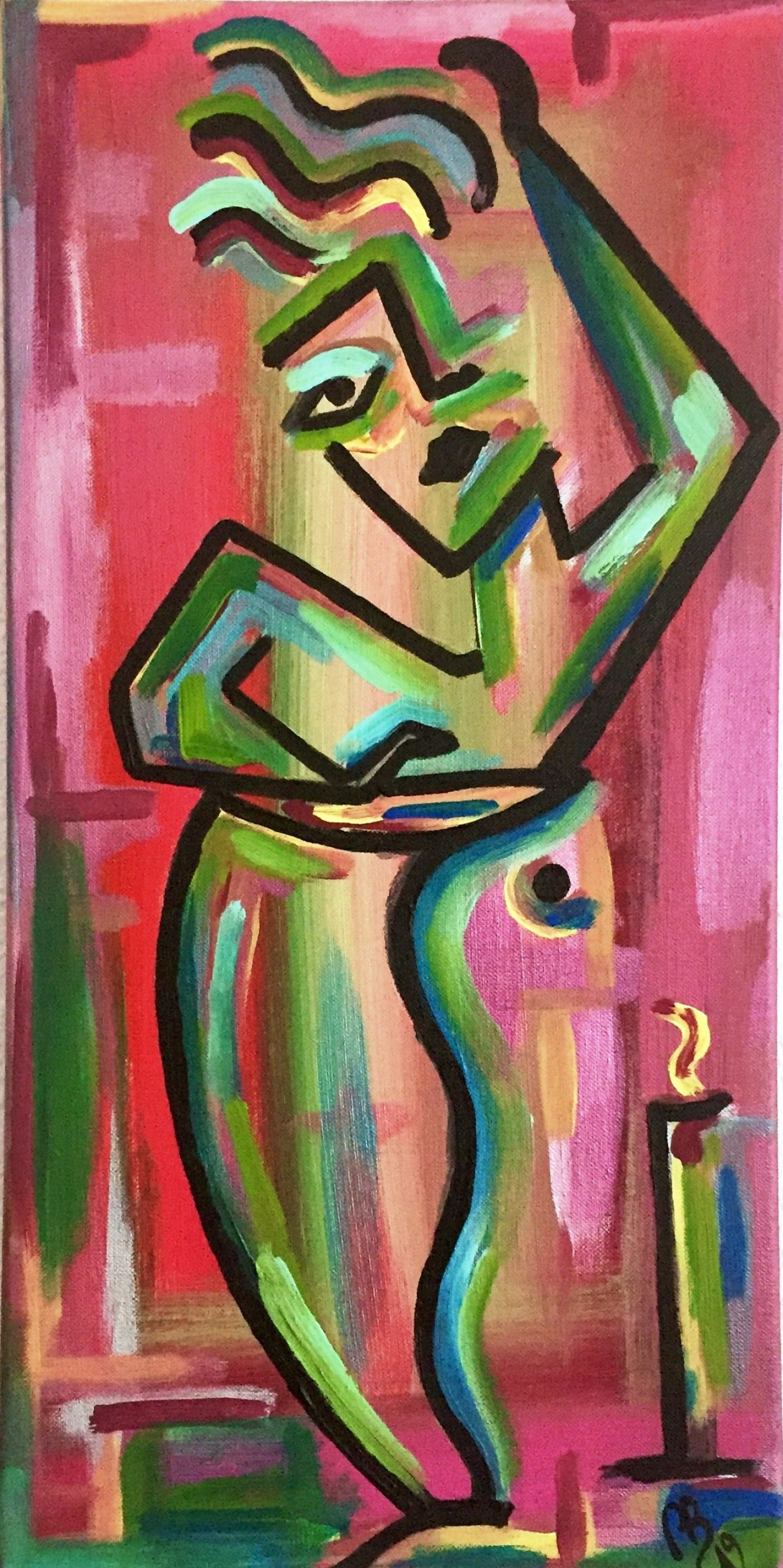 Besides his figurative work, he has developed a way to approach abstract art thinking it something spiritual, and almost meditative. Another aspect of his work is drawings, (illustration), which he does using various types of graphite and ink. These he does in series titled “JaZzArt” and the series is separated into phases. And although most are in black and white, some are of the phases are drawn with ink upon a colourful abstract background of watercolour.