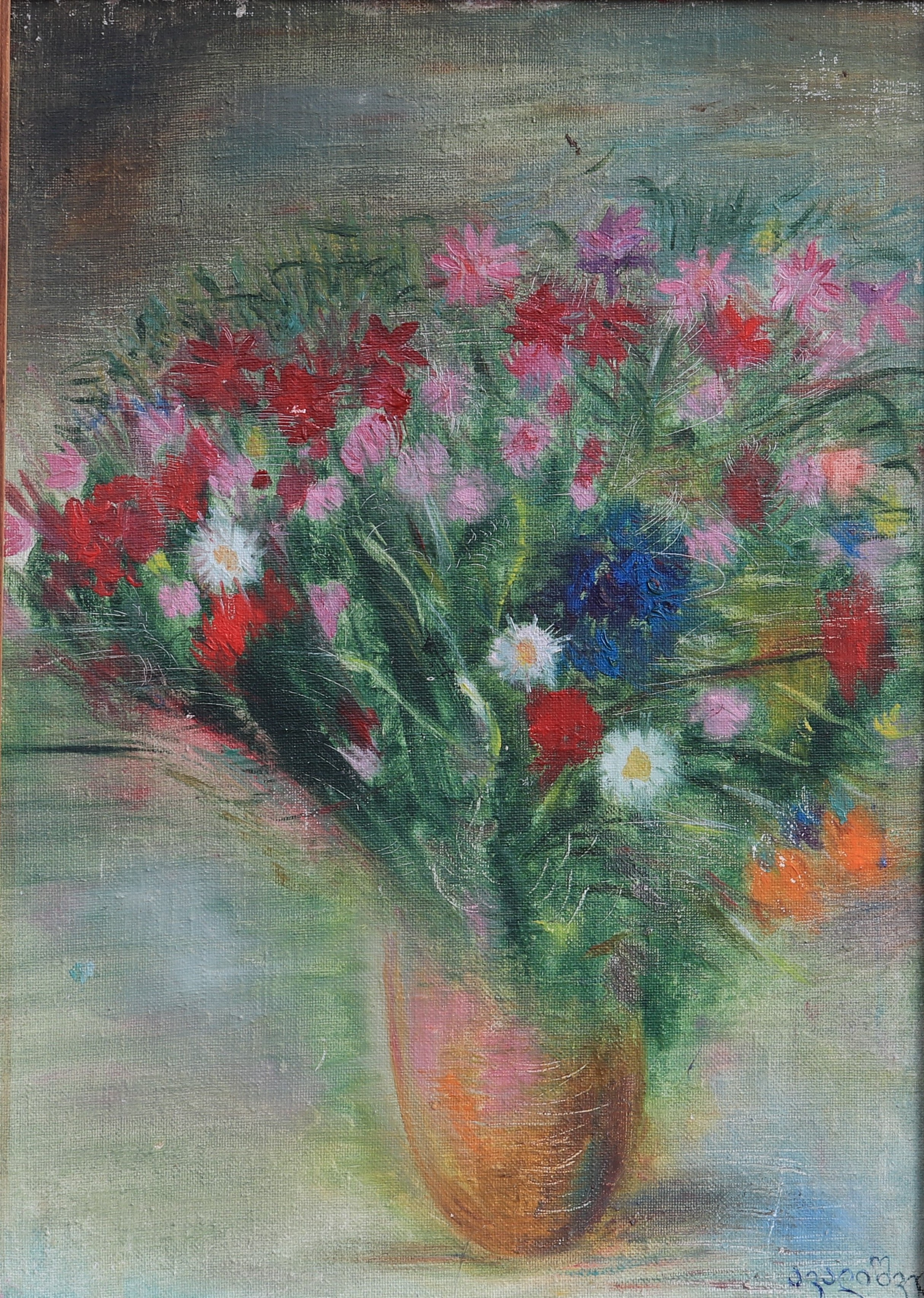 Pink Flowers, oil on canvas, 64×61 cm