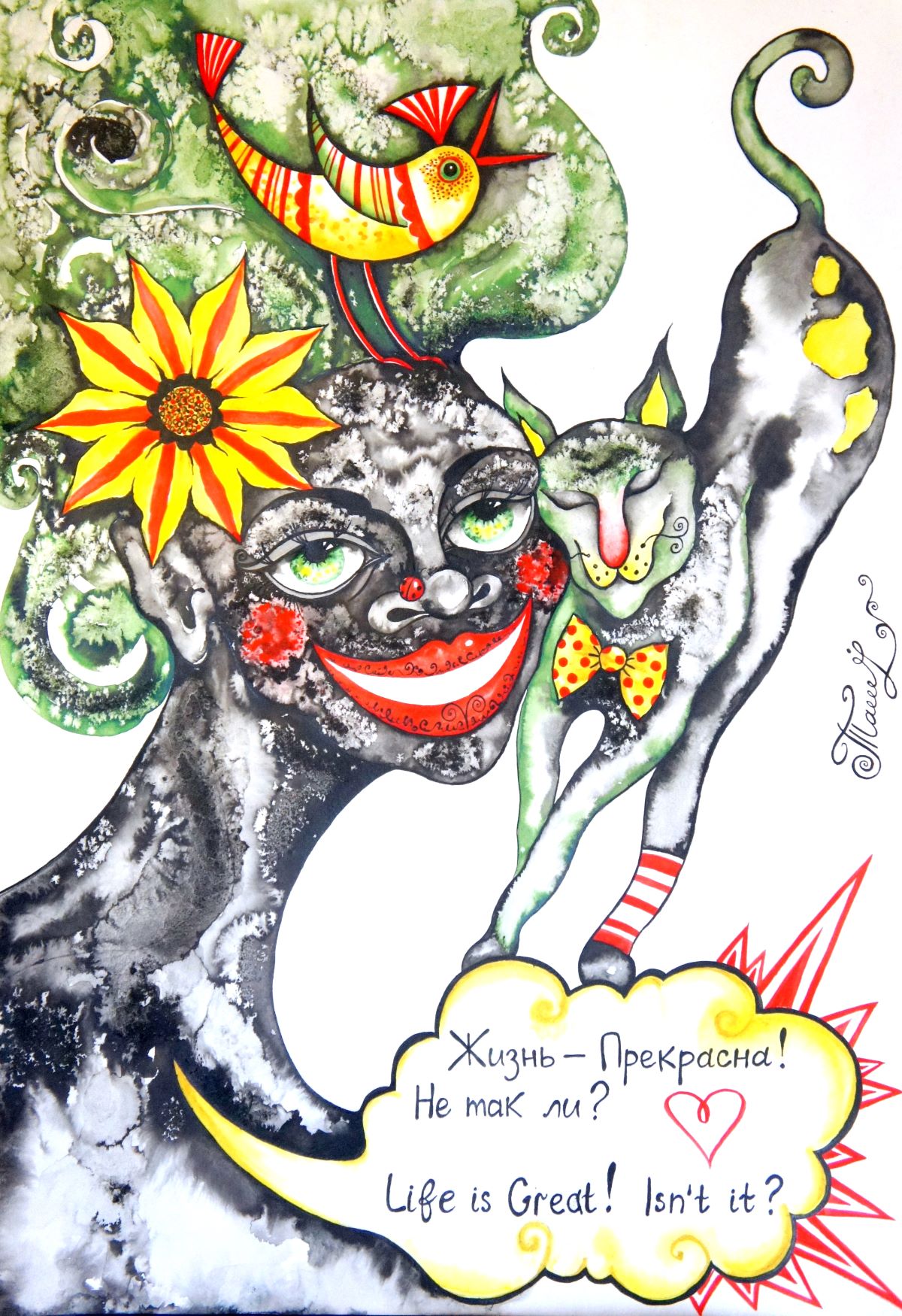 Life is Great! Isn’t it?, Watercolor, ink on paper, 60×42 cm