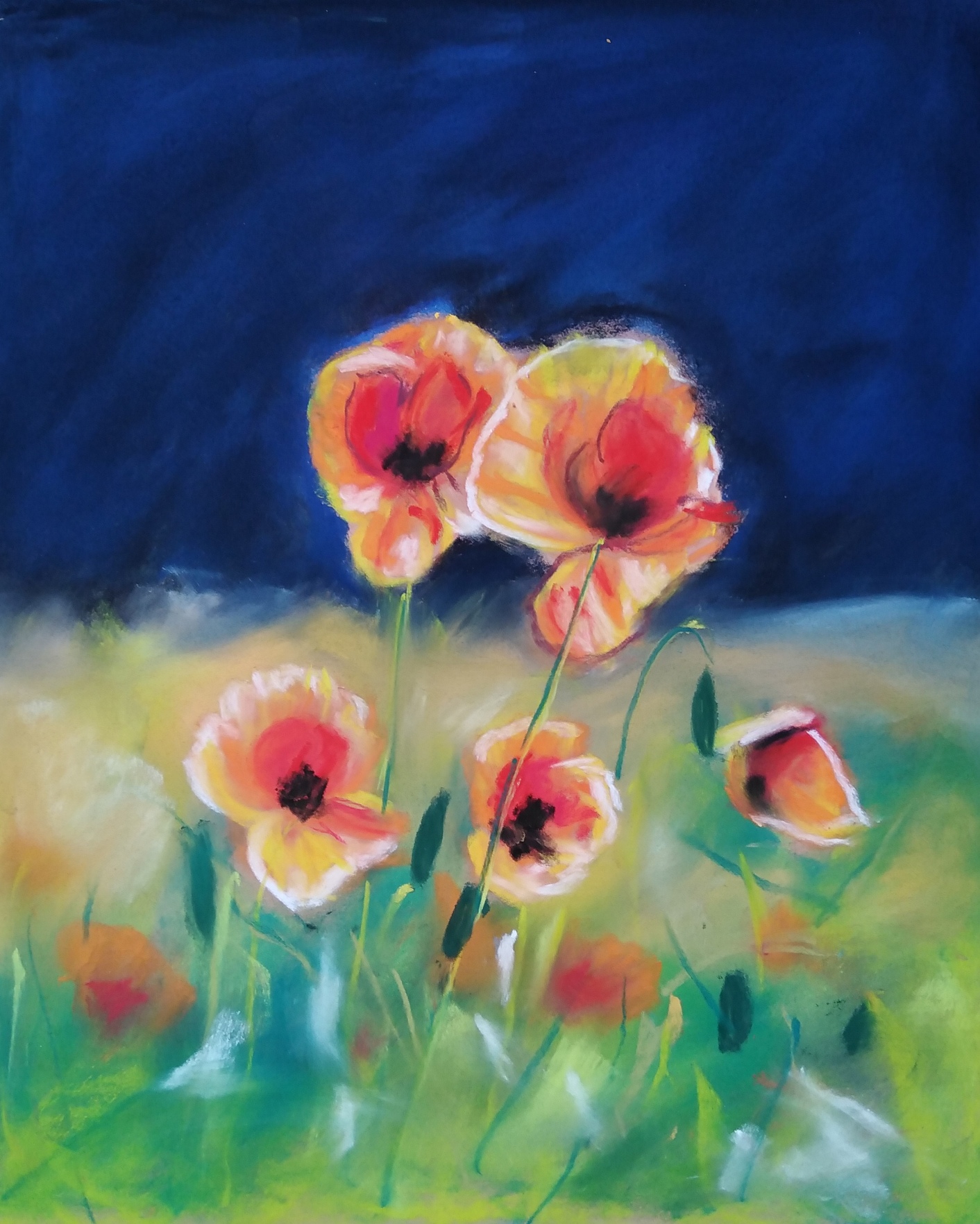 I have always been fascinated with the process of making a painting, the technicality of it, the nature of a painting’s surface and how texture is created. I used to think that I worked primarily with acrylics but I have expanded my repertoire and work with a variety of medium, ranging from soft pastels to encaustic wax paint. The process of making a painting is what’s important to me and I’m constantly on the look-out for a new material or tool to experiment with. As a result my work tends to flitter about between straight forward abstract landscape compositions to weird flowery things that have been requested by my patrons.