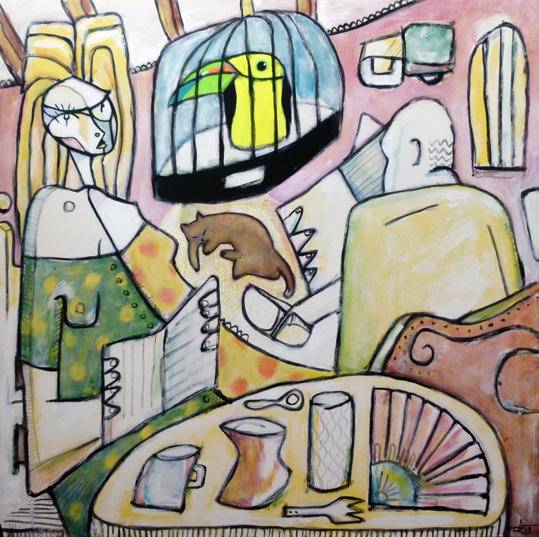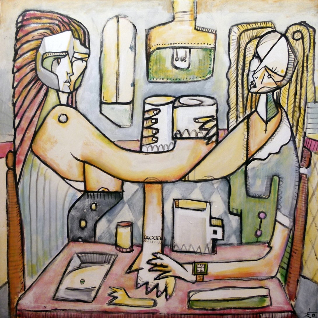 The technique approaches expressionism, with cubist and geometrist influences. I like colour, the more saturated, the better, and the finishing of the painting must be a little ‘casual’, worked but fresh and somewhat neglected where it has to be.