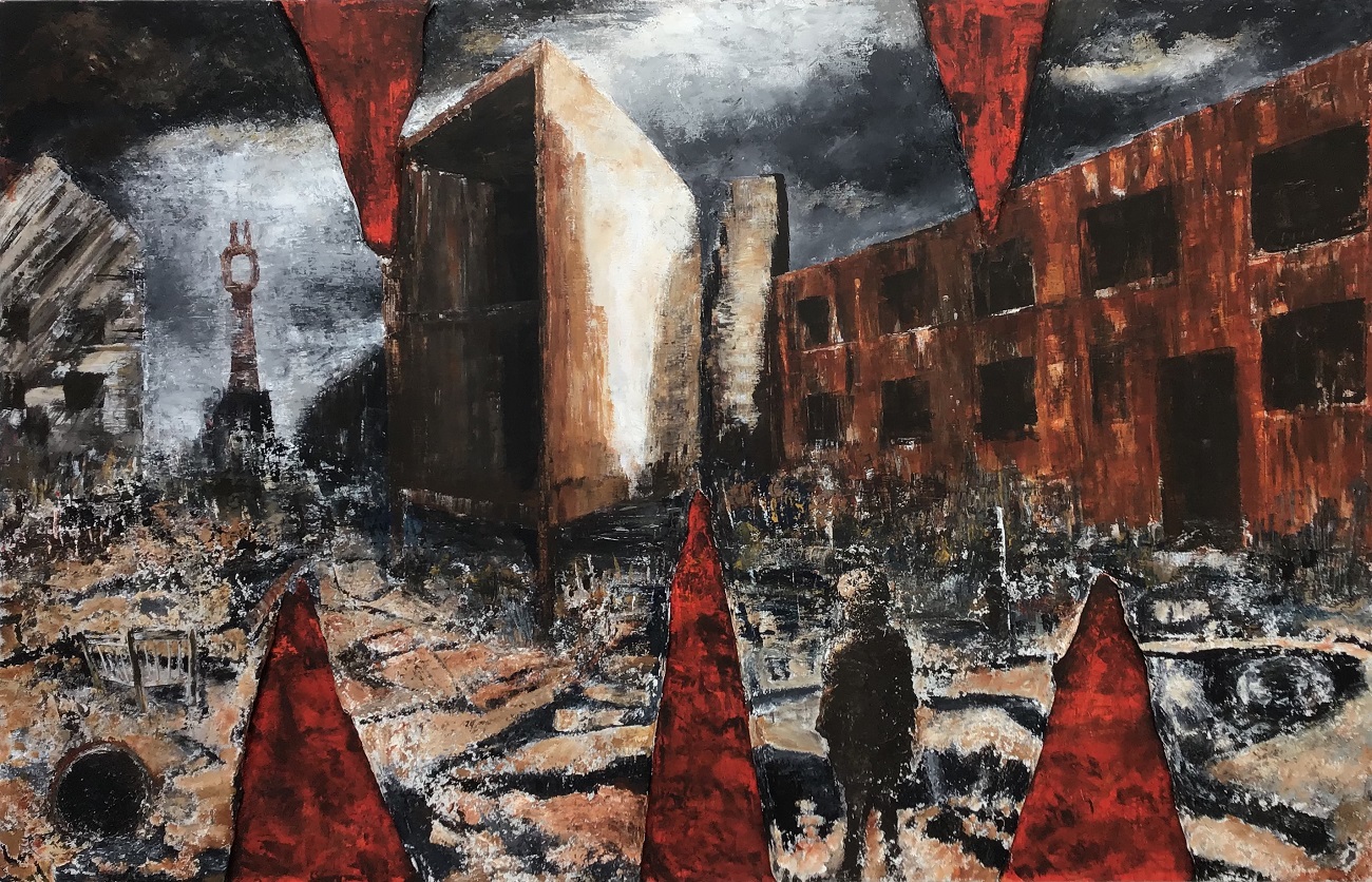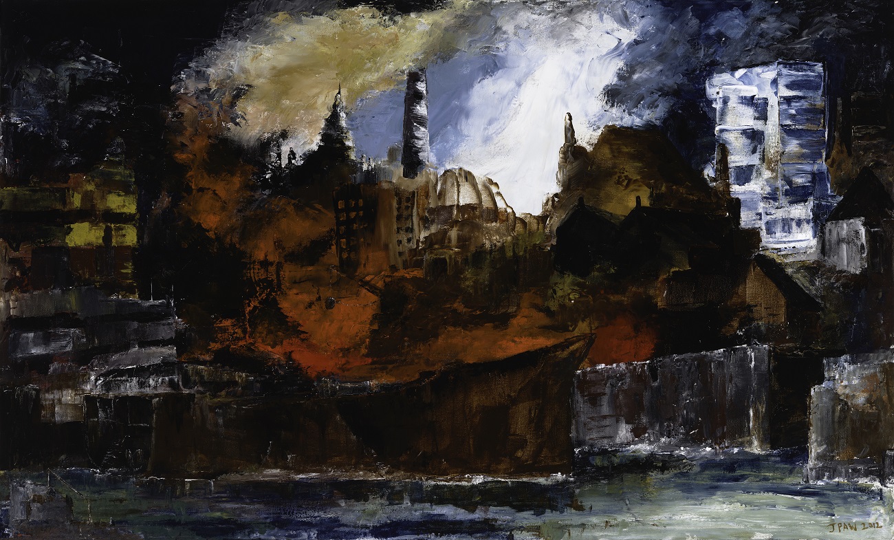 I am a Sheffield based painter, working from the top floor of an old steelworks in the industrial hinterland. Self-taught, I am drawn to paint, delighting in its subtleties and possibilities, and use it to create visual narratives, world’s for the eye to explore and roam around. This is slow art, inspired by the untold stories of industrial labor, by the relics that lie abandoned memento to our past endeavor, and the myths of our emergence. I see sublimity in the slow reclaiming of our decay and in the dichotomies of our dualism. My painting is an expression of the hard edged beauty, humor and occasionally tragedy I see around me, and my reaction to it.