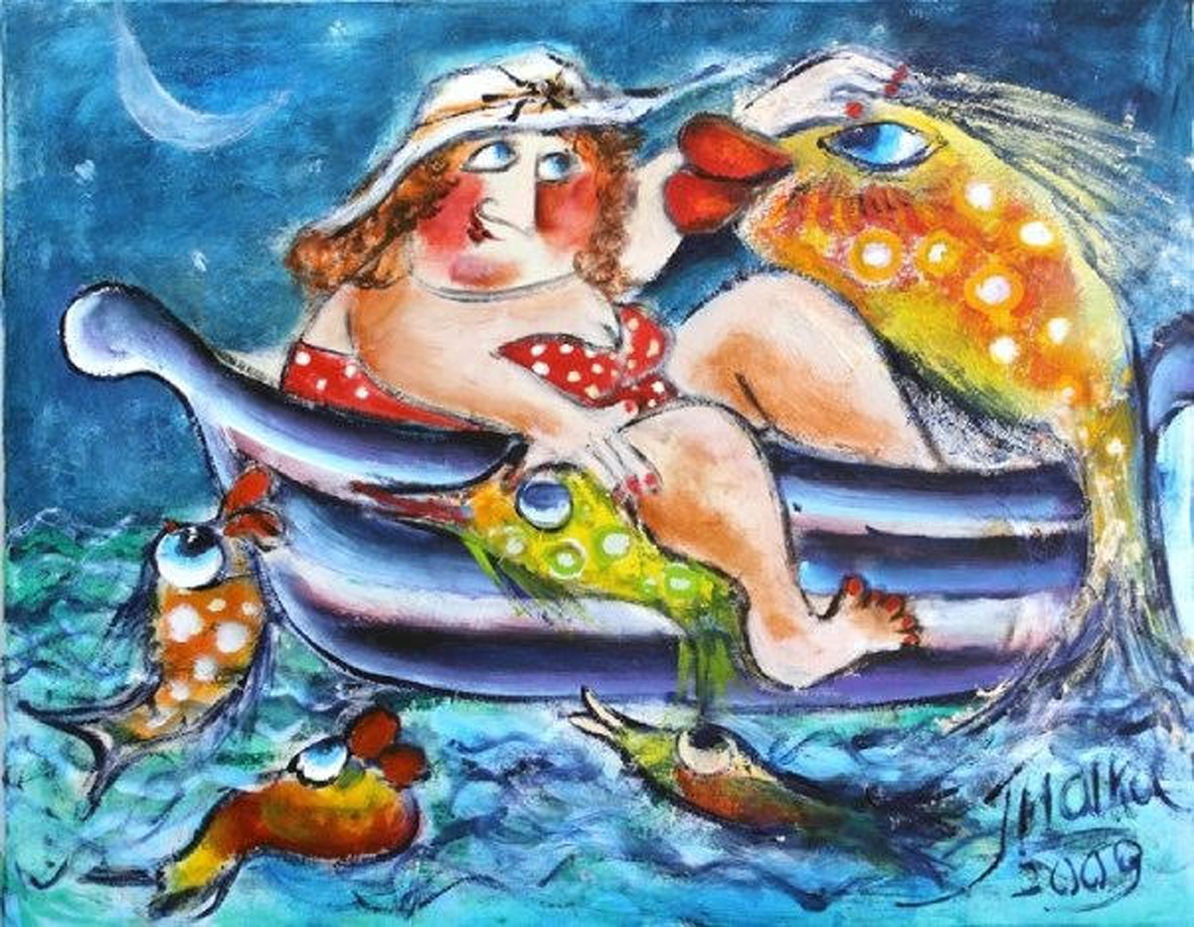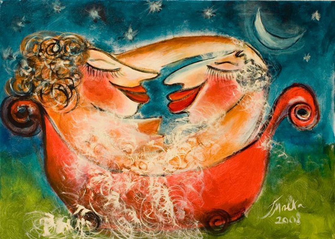 Malka utilizes different techniques, styles, and themes in painting as well as in sculpture, all of which have its distinctive features: strong and sometimes contrasting colors and joy of life. The naïve style is one of the painter’s favorites. Malka received the top award at the Moscow International Art Festival 2009 for a series of paintings on Jewish Life (for unique national originality). Following this success, Malka’s solo exhibitions were held at the National Museum in Minsk, at the Chagall House-Museum in Vitebsk (both Belarus), and at various exhibition sites in Riga (Latvia), Kiev (Ukraine), Vilnius (Lithuania), Moscow and St.-Petersburg (Russian Federation).