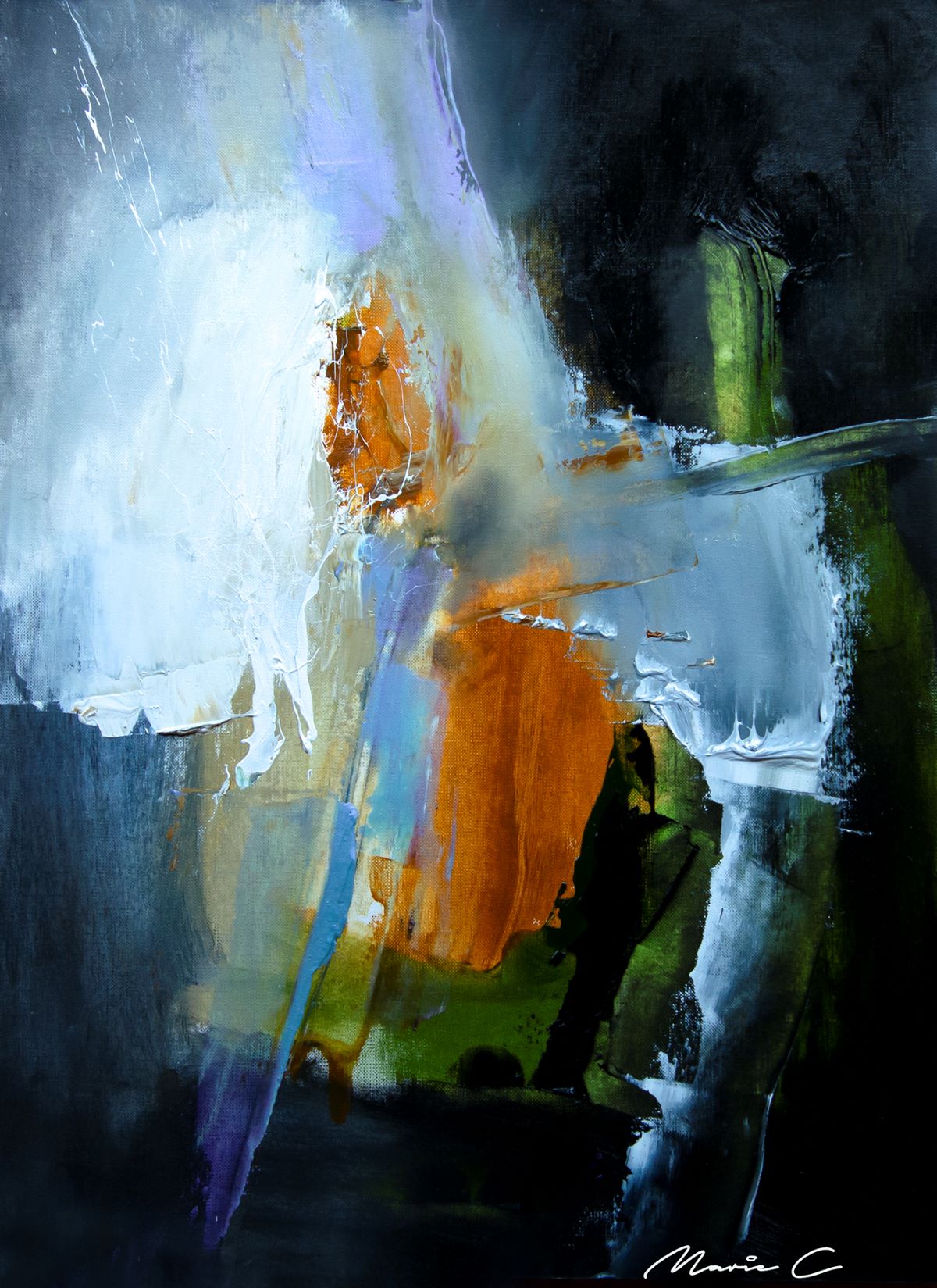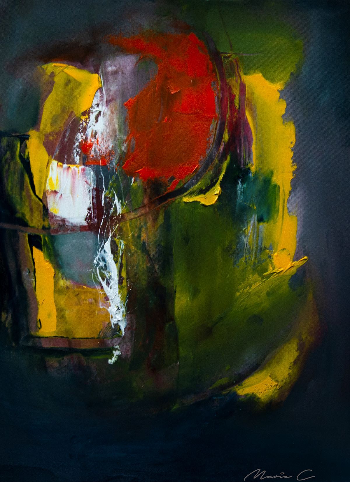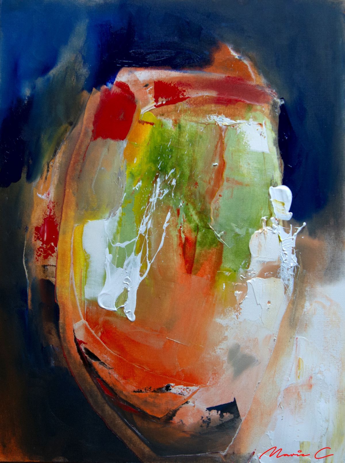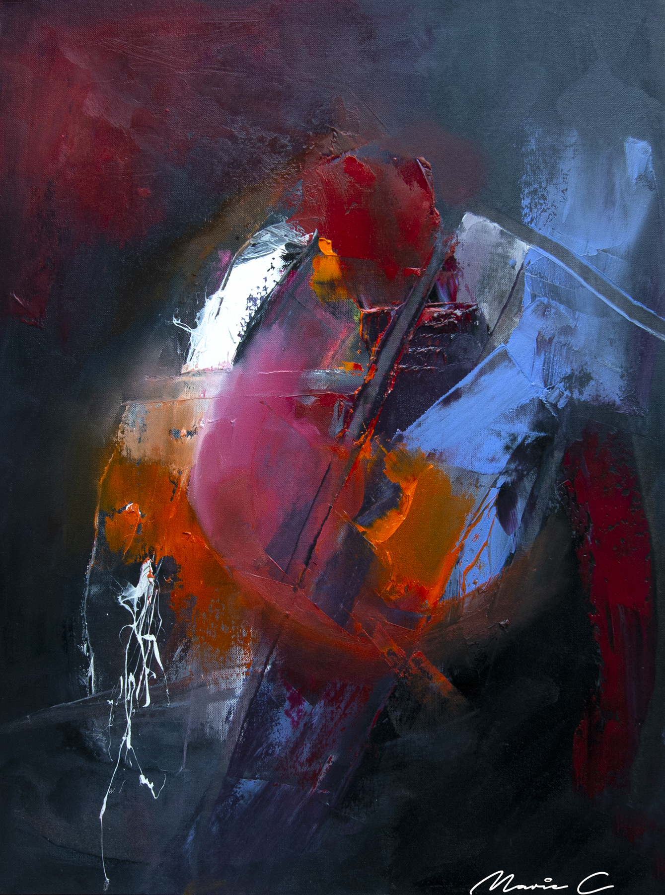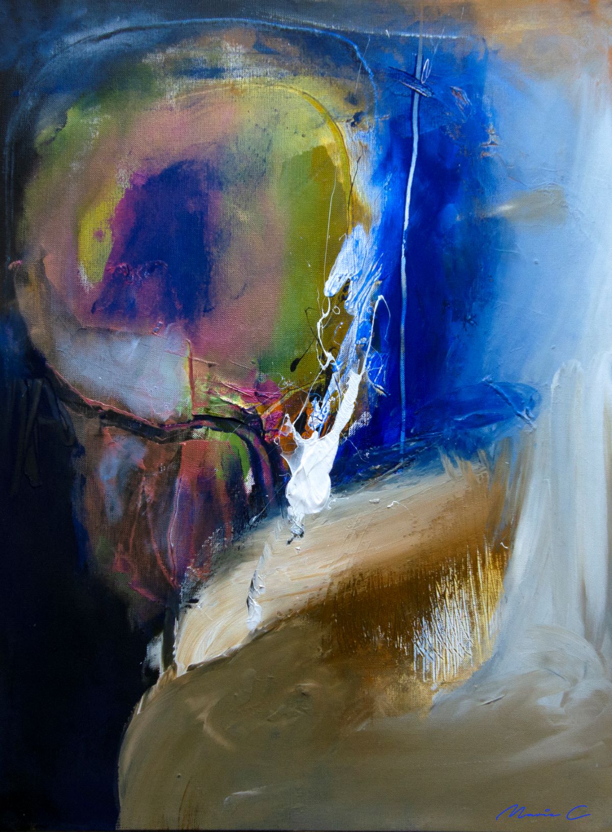 The painting came to me by chance. One day, I completed an unfinished painting of my husband, and it was a revelation! I have been painting for four years now. Self-taught, I have avoided taking courses, fearing they might compromise my singularity and unique vision. I always paint to music—two arts that are inseparable for me. It is an inner journey. During my creations, I enter a meditative state and only truly discover the work once it is finished. Sometimes, the experience is so powerful that it moves me to tears.