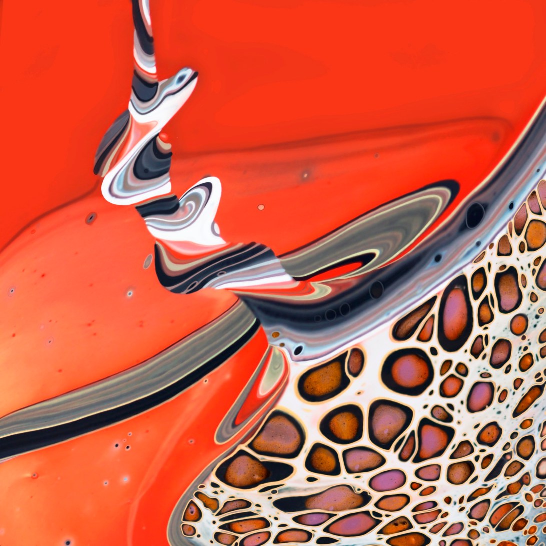 My work is a process involving pouring acrylics mixed with ink that when manipulated with a palette knife creates micro compositions of bubbly and lacy patterns. I capture macro photographs of these compositions, enlarge and print onto canvas or stretched heavy silk and then hand finish to bring them to life. The works convey something different to every viewer but most see some sort of organic evolution. They often see space or sea or nature, but always something that is moving.