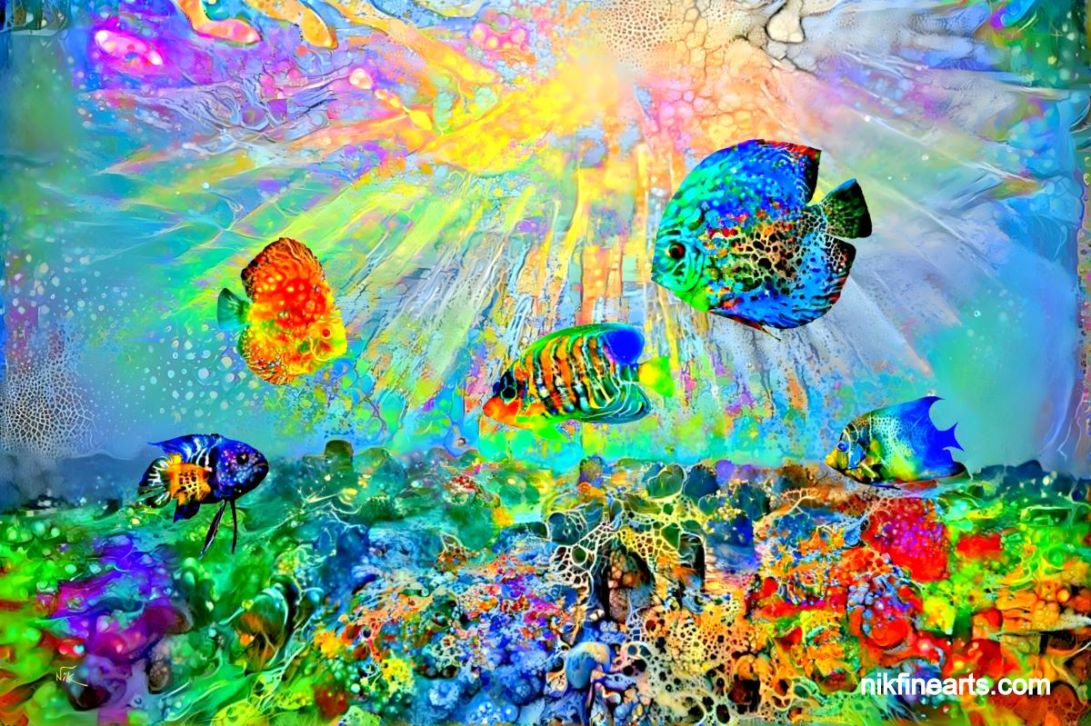 BEAUTIFUL GRACEFUL FISH, Acrylic on canvas, 32”x47”
