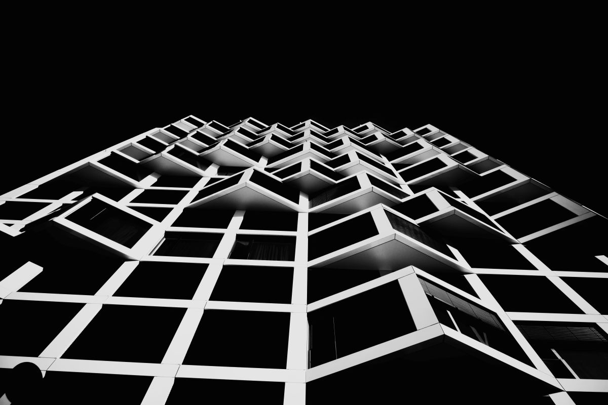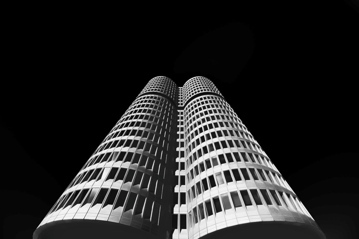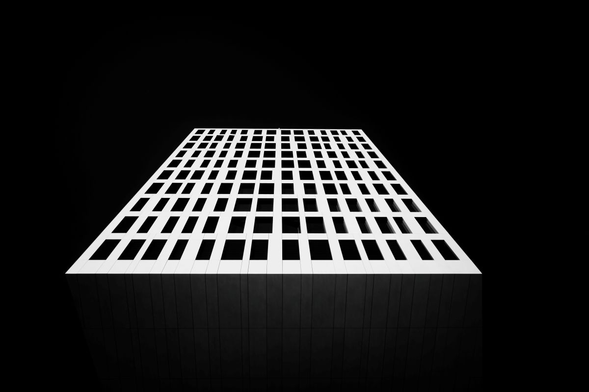 Central to this project is the use of extreme low‑angle perspectives. This deliberate choice decontextualizes the architecture from its everyday surroundings. By isolating buildings against a pitch‑black infrared sky, I transform functional structures into abstract monoliths. The resulting compositions emphasize scale, rhythm, and order, inviting viewers to experience a sense of elevation and harmony within the raw geometry of modern design.
