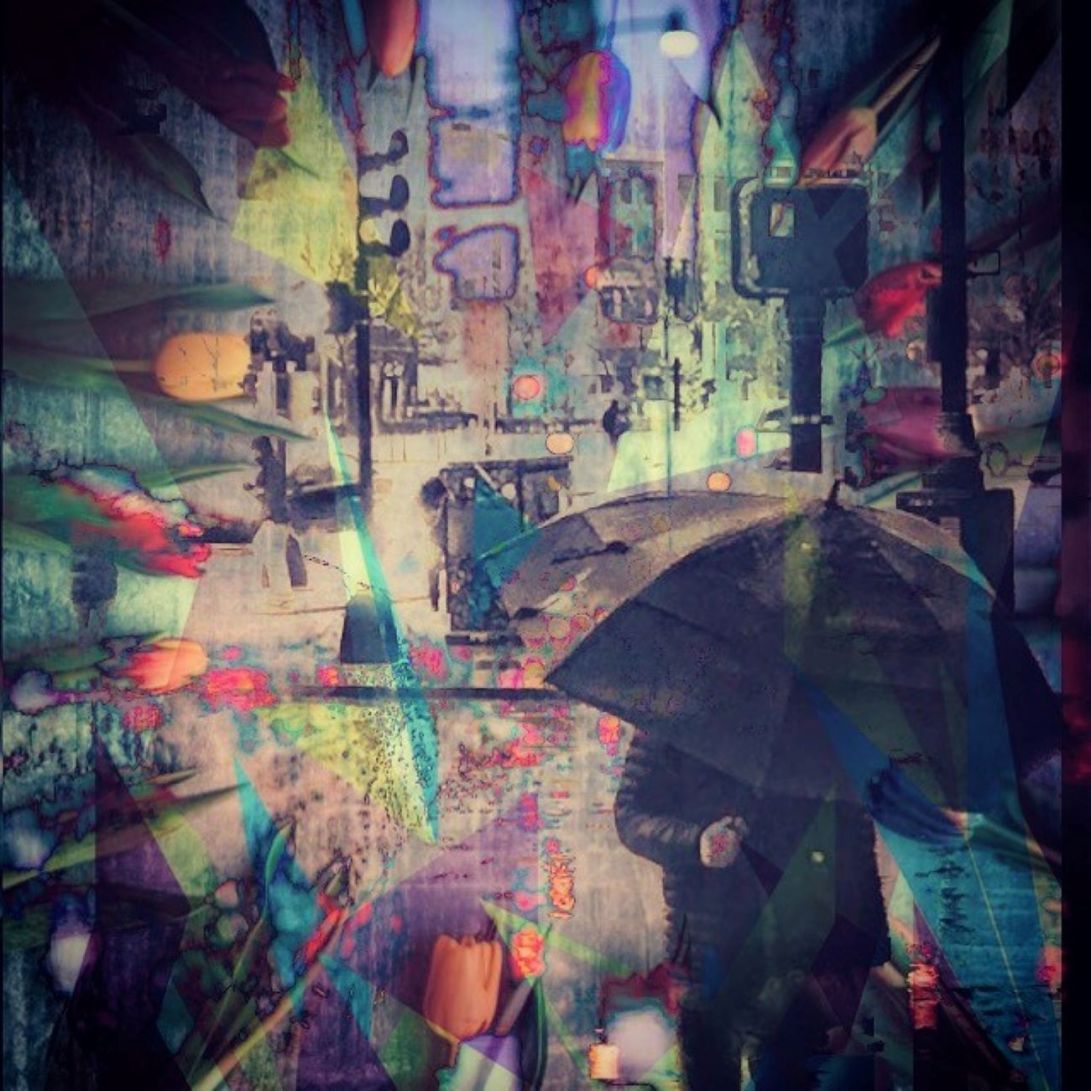 My work is predominantly colorful, imaginative photomontages. It combines photos of nature and people with structural layers made using old photographs, my paintings, and sculptures.