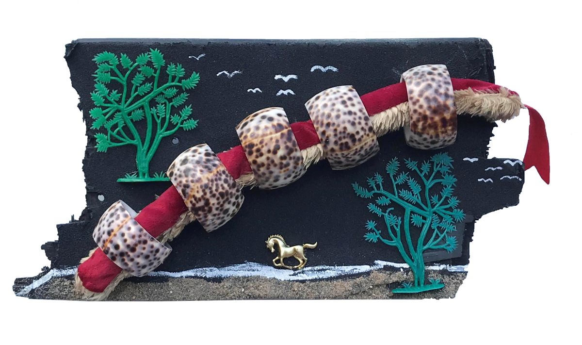 I work intuitively, putting objects together in new combinations to enhance their expressive power. At some point in the process the piece I’m working on will tell me what it needs to continue. It is then my quest to find the missing pieces.
