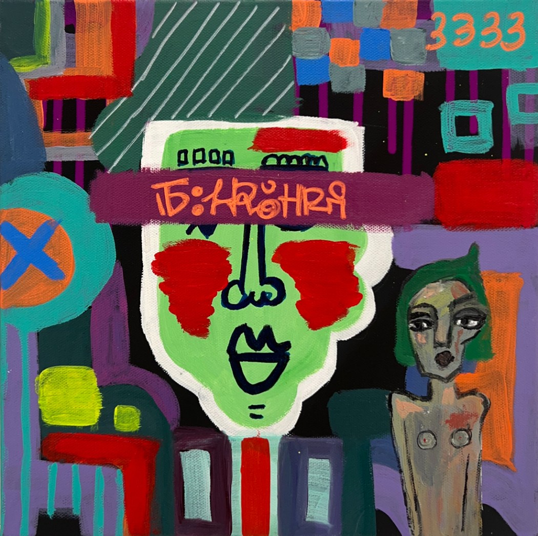Series: “More Hip-Hop covers”, acrylic, acrylic marker on canvas, size 24 x 24 in