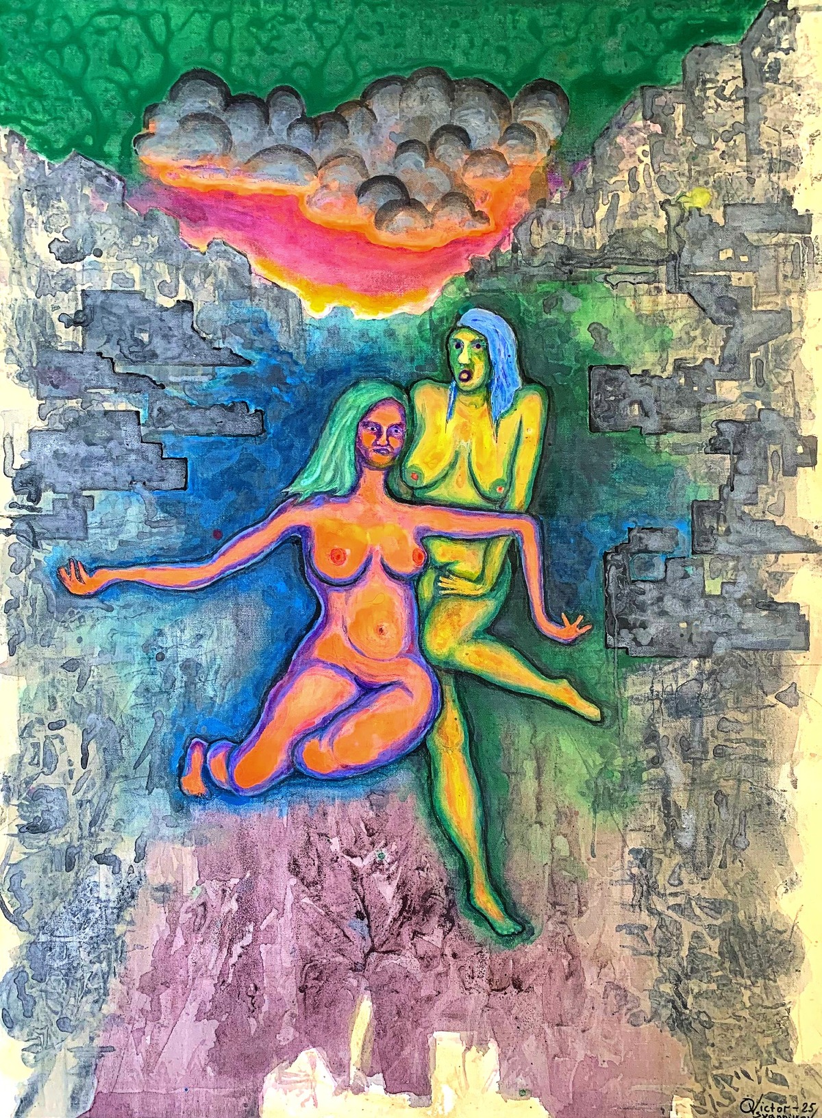 The Girls Went for a Walk – It’s Still War, acrylic on canvas, 40″ x 30″