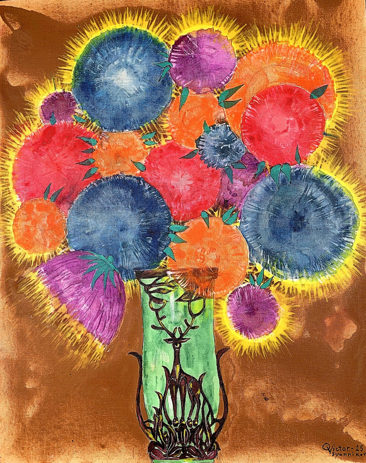 Chrysanthemums, acrylic on canvas, 20″ x 16″