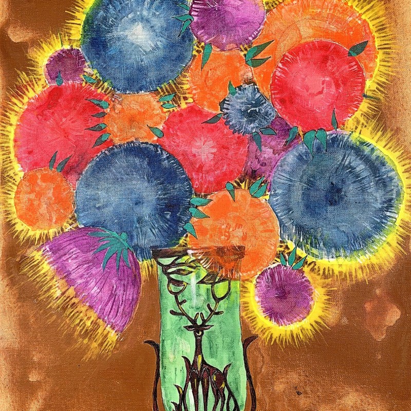 Chrysanthemums, acrylic on canvas, 20″ x 16″