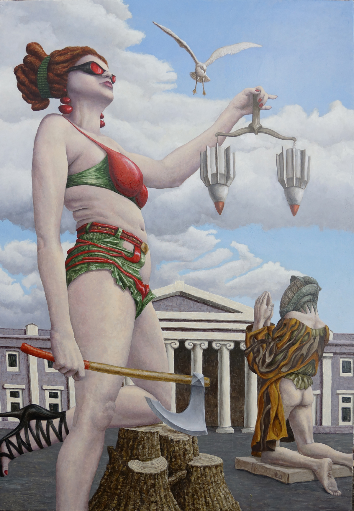 Expressionist in substance, because the expression transforms the painter’s inner turmoil into a rather corrosive existential and societal message, although a form of humor sometimes appears in the final work. In this we find affiliation with painters from German expressionism of the 1930s such as Otto Dix or Georges Grosz.