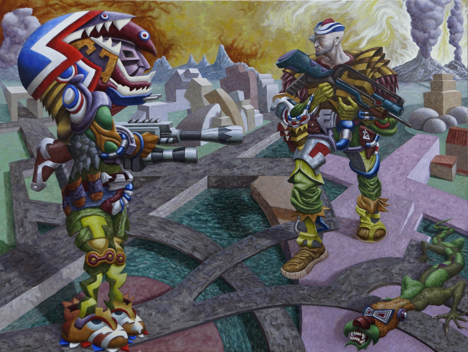 Pop, through colors, volumes, lines, which draw from contemporary popular arts (comic strips, street art, 3D cartoons, … ) a dynamism and brilliance that has disappeared in the elitist and dried-up production of a large number of “contemporary art” zealots.