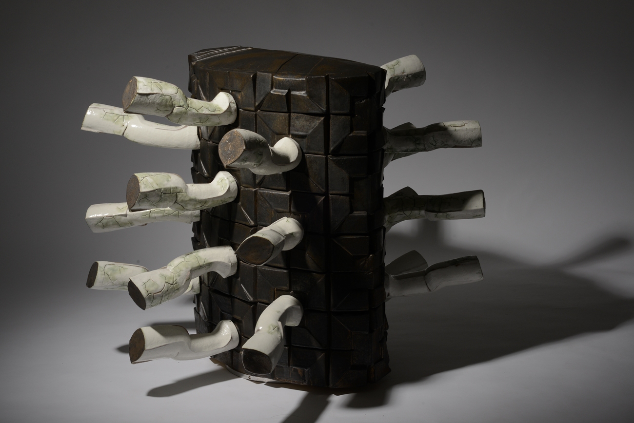 Exploring with ceramic media in the veins of the container, if we skip the setting of media at the first place only talk about the process of craft, it can be found that the existence of the craft was to solve the problems of human needs, and the process was constantly revised and refined for promoting the human progression. In the spirit of these traditional craftsmen, the craftsman has the ability to detect problems and solve problems, and to make such causal problems through their skills to produce the tools of human needs. In addition to solving the problem, the craftsman’s product also records the social development pattern and social atmosphere at the same time. This connections are like social scholars who understand the social structure and phenomena of different ages and outlines of society by analyzing the data obtained from people’s livelihood supplies. In the past, the craftsmen through finding out problems which be solved and unconsciously recorded the social pattern. Along with this idea has solved the problem of finding a balance between functional and spirituality in my choice of ceramic art. Also think about how to translate the modern social patterns through the skills and spirit of the ceramic artist. Through functional containers combining with emotional sculptures can be changed into my conversation with today’s society.